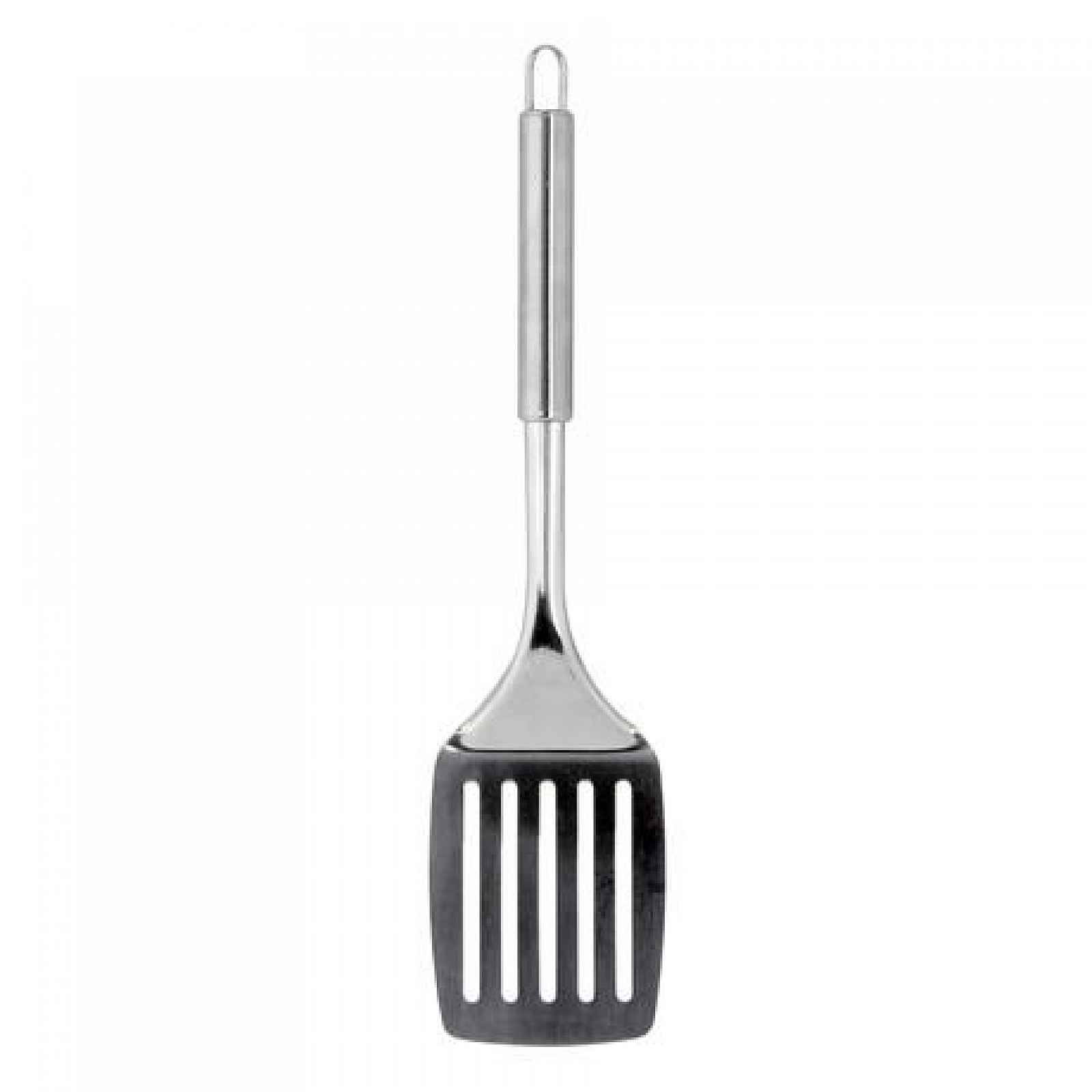 Obracečka děrovaná nerez Délka: 34 cm Z lesklé nerez oceli S otvorem pro zavěšení Vhodná do myčky na nádobí Rozměry: 34 x 8,2 x 2,5 cm Barva: stříbrná