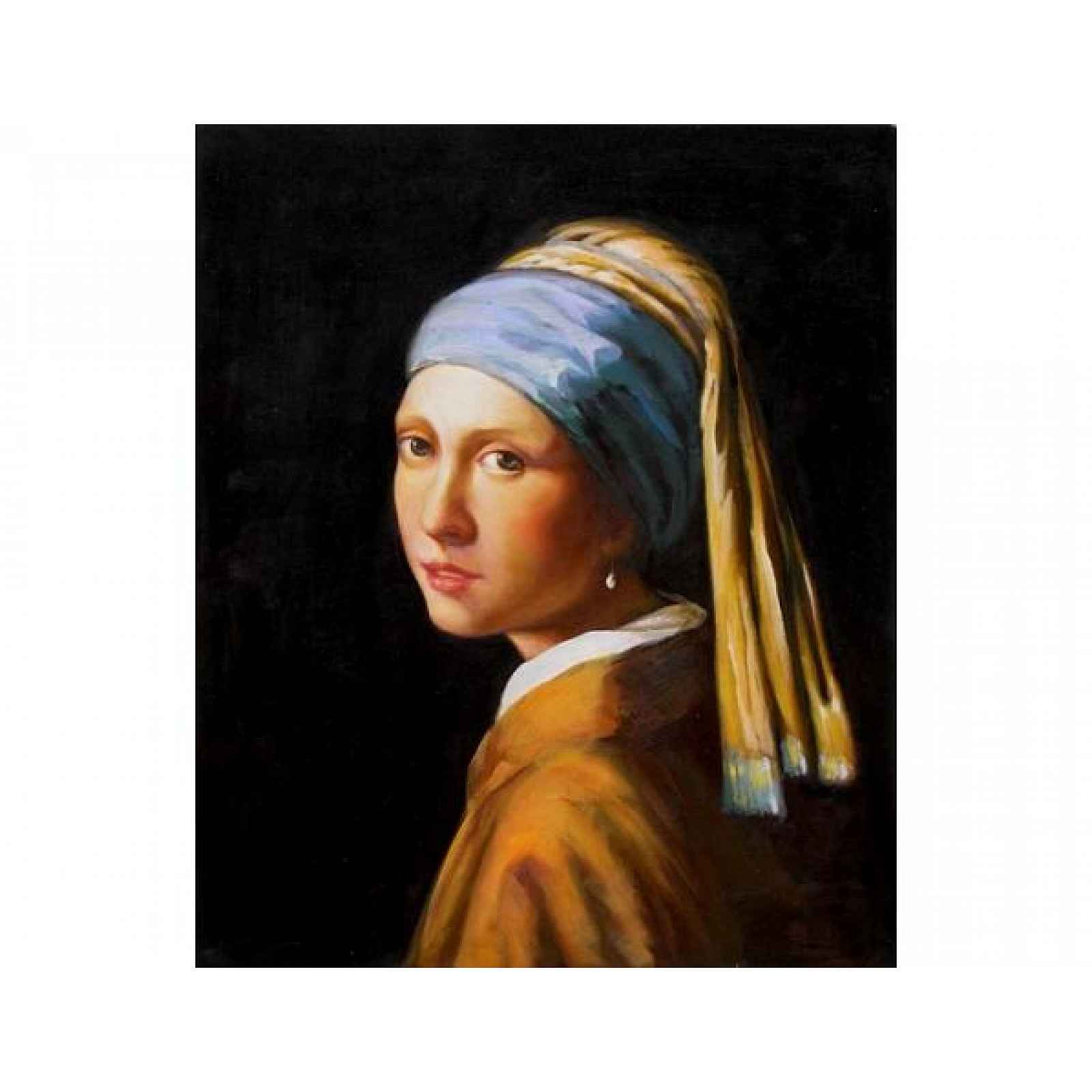 Obraz - Dáma s perlou, 60x50 cm. Ručně malovaný obraz olejovými barvami, vypnutý na kvalitním vypínacím, dřevěném blind rámu. S motivem Dámy s perlou, kterou v originále namaloval Joannes Jan Vermeer Van Delft Obraz je možné zarámovat do dřevěného ozdobného rámu, nebo jej opatřit dřevěnou ozdobnou lištou, nabídku naleznete v sekci Rámy a rámování. Za zvýhodněnou cenu nabízíme poslední obraz (původní cena 3 150 Kč). Jedná se o nový produkt, který pochází ze storna objednávky jiného zákazníka. Případně jsme jej mohli rozbalit i za účelem předvádění či focení pro náš e-shop. Zboží je v bezvadném stavu.