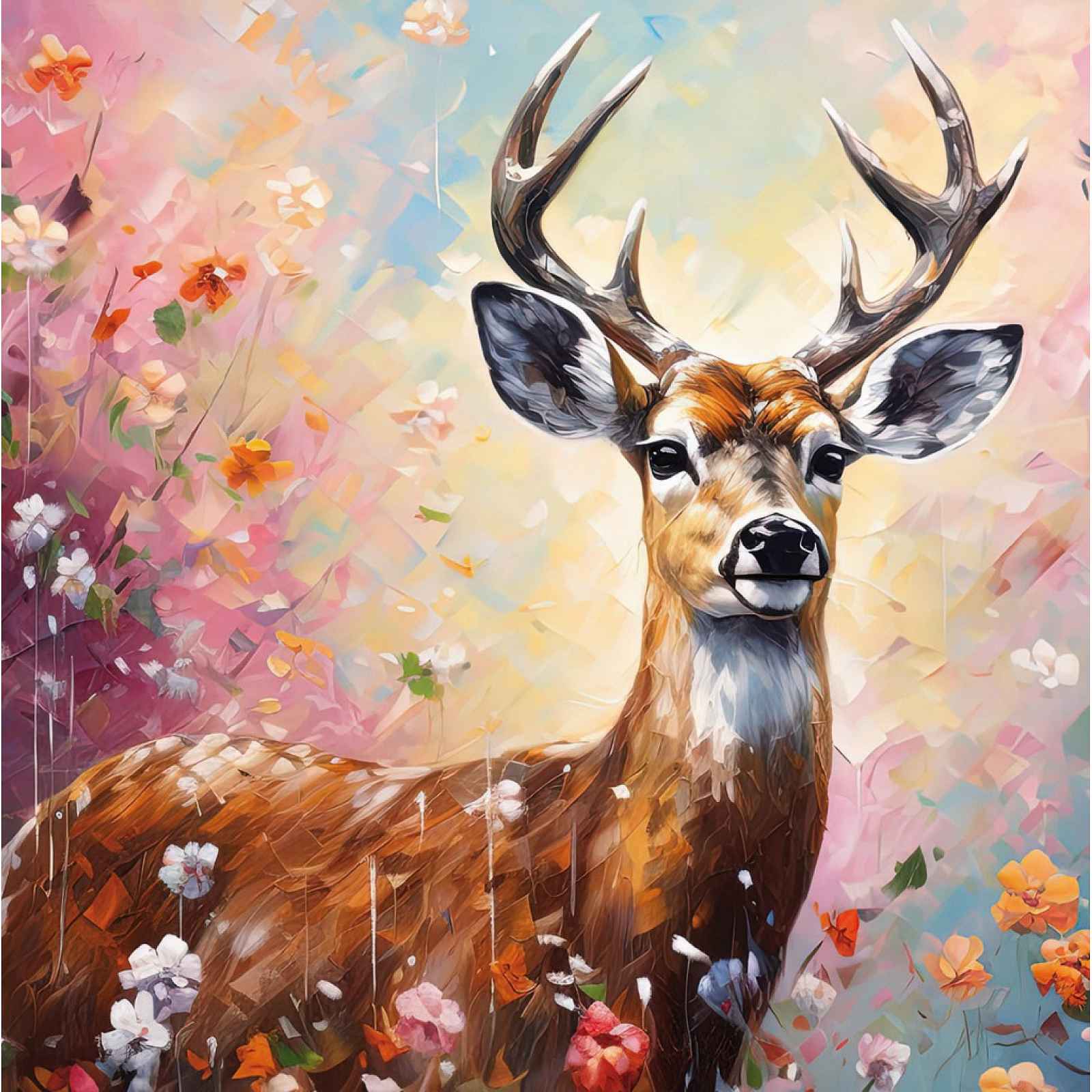 Obraz na plátně 35×35 cm vnese do interiéru dotek přírody i elegance. Spojuje krásu lesní zvěře s pastelovými květy a díky efektu olejomalby oživí každou stěnu. Obraz tištěný na plátně o rozměru 35x35 cm vnese do vašeho domova dotek přírody a umělecké elegance. Čtvercový formát propojuje vznešenou krásu lesní zvěře s jemnými pastelovými květy a vytváří tak výrazný dekorativní prvek, který oživí každou stěnu. Díky věrnému efektu olejomalby je ideálním doplňkem pro moderní, skandinávské i romanticky laděné interiéry. - obraz na zeď - rozměry: 35x35 cm - rám: vnitřní MDF rám (tzv. blind rám – plátno natažené na MDF rámu) - provedení obrazu: povrchově upravený tisk s vysokým rozlišením, hladký povrch - umělecký efekt: imitace olejomalby (věrný vzhled ruční malby s texturou) - barva: vícebarevná - motiv: zvíře – jelen v květinách - způsob umístění: zadní zavěšení na zeď - montážní materiál není součástí balení - využití: nástěnná dekorace do obývacího pokoje, ložnice, chodby, pracovny