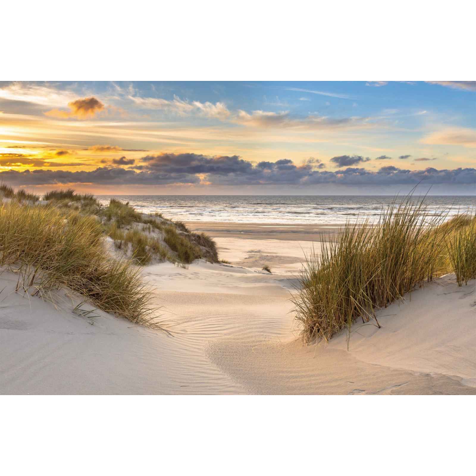 Obraz na zeď tištěný na plátně 118x78 cm s motivem mořské krajiny vnese do interiéru útulnost, klid a pohodu. Obraz tištěný na plátně o rozměru 118x78 cm oživí každou stěnu a vnese do vašeho domova příjemnou a relaxační atmosféru. Motiv písčité cesty vedoucí k mořské pláži při západu slunce působí uklidňujícím dojmem a dodá místnosti útulnost i letní pohodu. - obraz na zeď - rozměry: 118x78 cm - rám: vnitřní MDF rám (tzv. blind rám – plátno natažené na MDF rámu) - provedení obrazu: povrchově upravený tisk s vysokým rozlišením - barva: vícebarevná - motiv: mořská krajina – písečná cesta na pláž, západ slunce u moře - způsob umístění: zadní zavěšení na zeď - montážní materiál není součástí balení - využití: nástěnná dekorace do obývacího pokoje, ložnice, chodby, pracovny