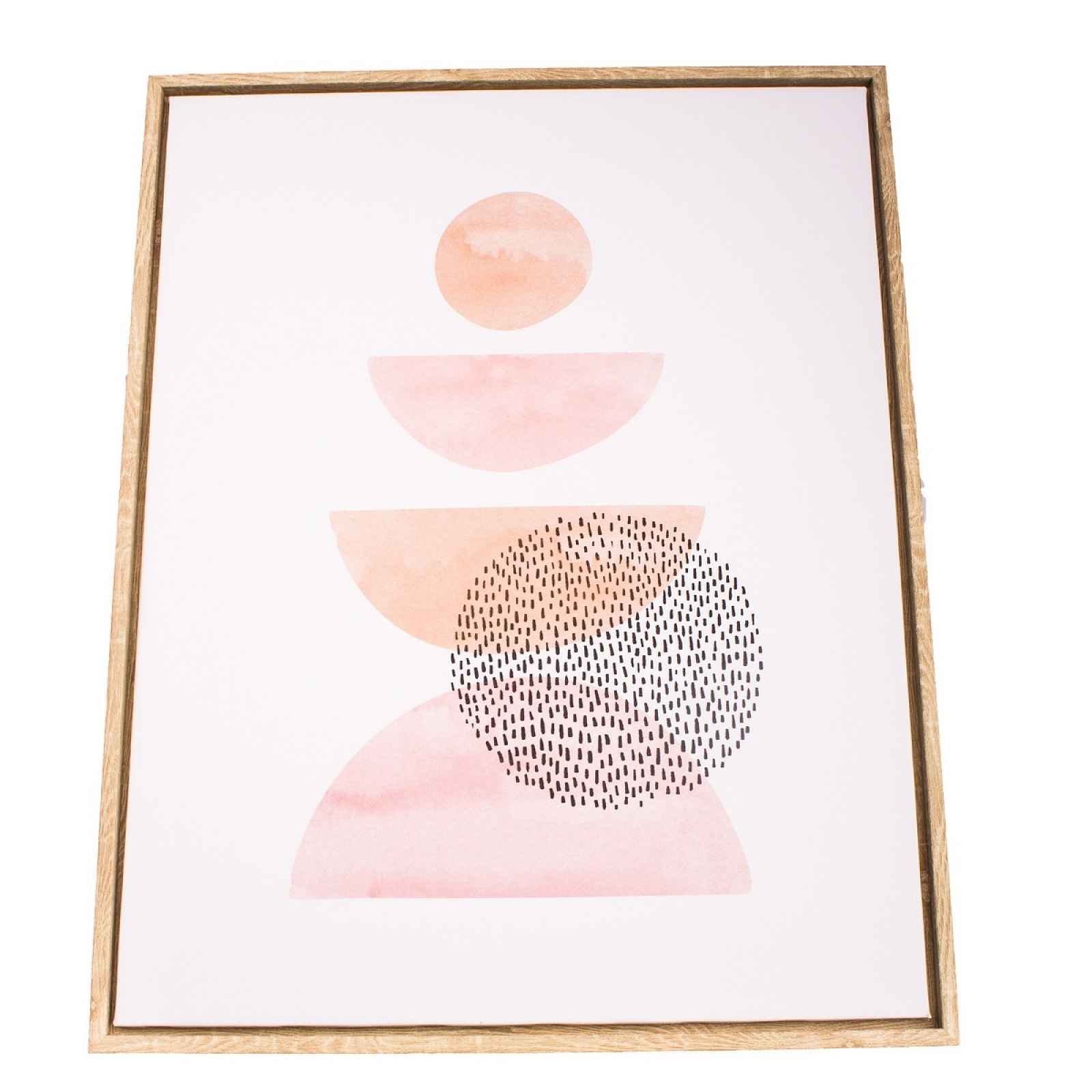 Tento obraz s jemným motivem se hodí do moderního interiéru. Jeho decentní a pěkně sladěné barvy bez problému zkombinujete s různým nábytkem. Dekor je tištěný na plátně. Obraz je doplněn dřevěným rámem v přírodní barvě.