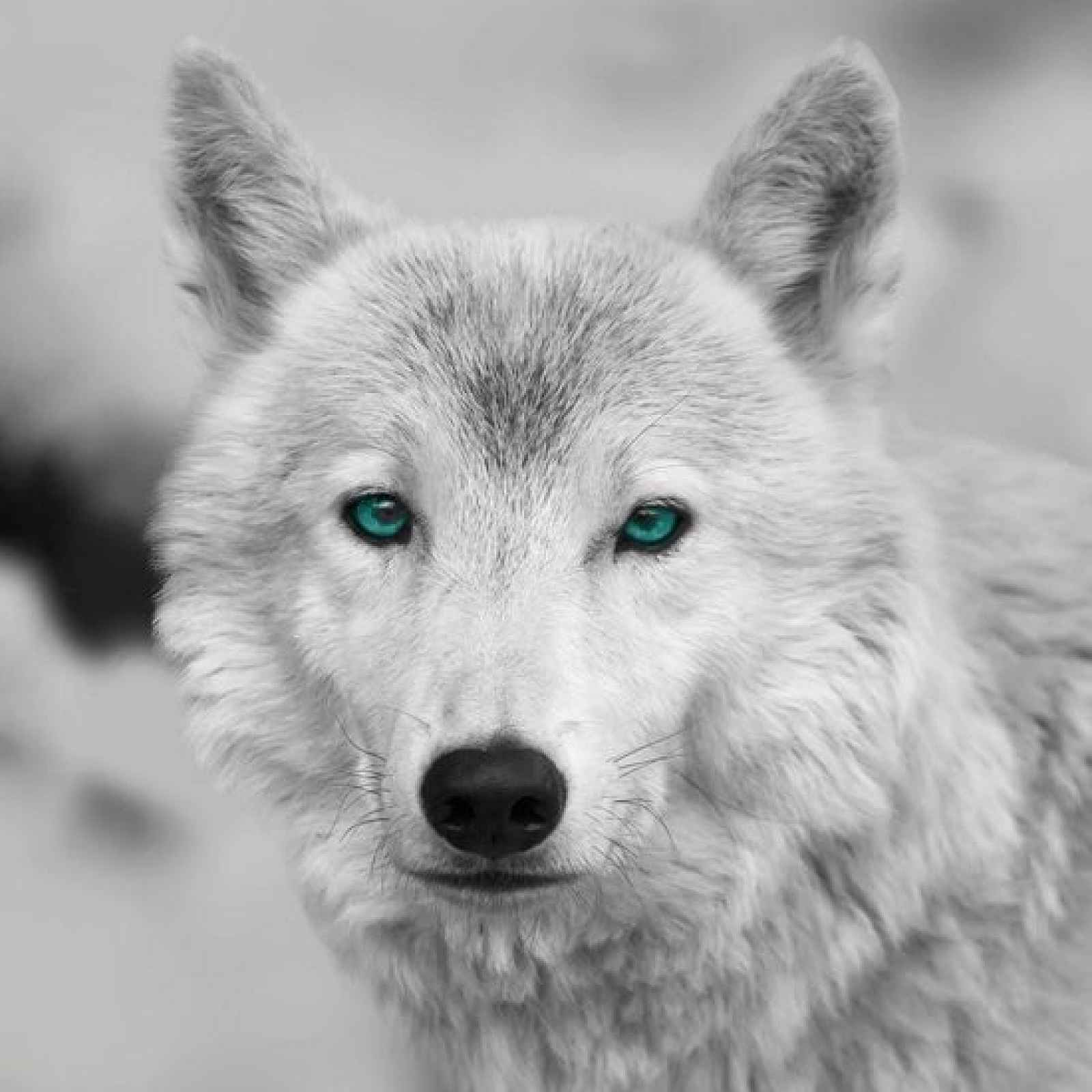 Čtvercový obraz na zeď s motivem arktického vlka s výraznýma tyrkysovýma očima perfektně doladí atmosféru interiéru. Černobílý obraz o rozměru 35x35 cm. - obraz na zeď - provedení obrazu: tištěný na plátně - barva: šedá - motiv: arktický vlk - rozměry: 35x35 cm - způsob umístění: zadní zavěšení na zeď - využití: nástěnná dekorace do interiéru - moderní styl