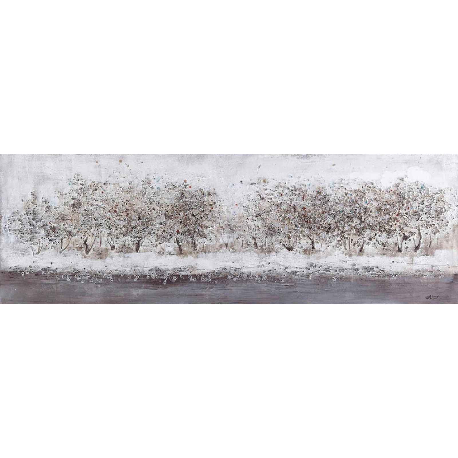 Ručně malovaný obraz na zeď s motivem stromů bude v každé místnosti perfektní ozdobou. Každý obraz je jedinečný a stane se atraktivním dekoračním doplňkem. - obraz na zeď - rám: vnitřní dřevěný rám (tzv. blind rám - plátno natažené na dřevěném rámu) - provedení obrazu: originální olejová malba na plátno (ručně malovaný) - motiv: stromy - rozměry: 120x40 cm - způsob zavěšení: zadní zavěšení na zeď - dodáváno s upevňovacím materiálem - drobné odchylky oproti vyobrazenému vzoru jsou u originální malby přípustné - využití: nástěnná dekorace
