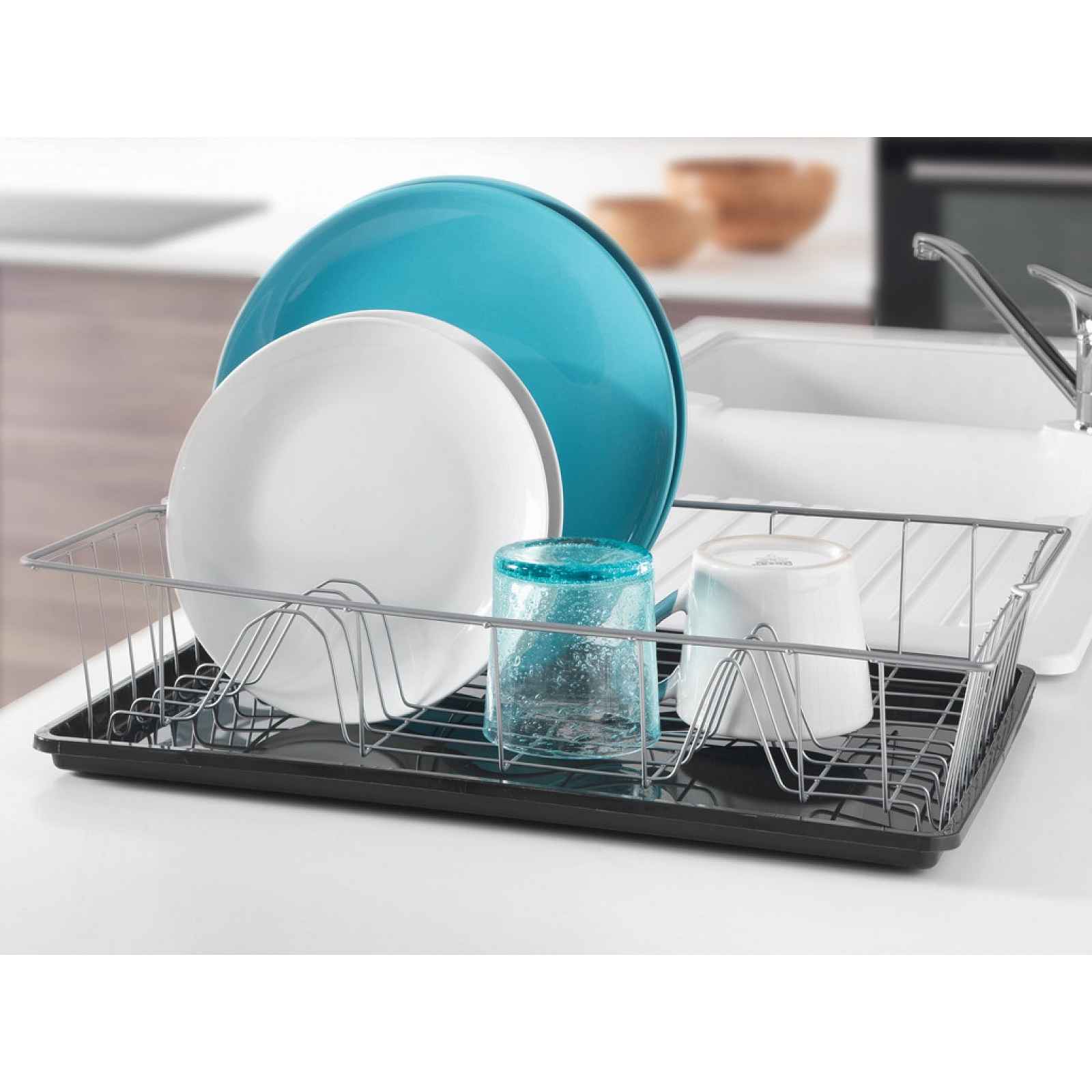 Odkapávač na nádobí s podnosem na vodu udrží linku suchou a dodá jí moderní vzhled. Kombinace stříbrné a antracitové ladí s každým interiérem. Odkapávač na nádobí s praktickým podnosem pro odtékání vody udrží vaši kuchyňskou linku v suchu a zároveň ji dodá moderní vzhled díky stylovému designu. Elegantní kombinace stříbrné a antracitové barvy se snadno sladí s každým interiérem. - materiál: kov, plast - povrchová úprava: polytherm (nerezavějící povrch se vzhledem matně saténového stříbrného kovu) - barva: antracitová - praktická miska pro zachycení odkapávající vody - ideální pro sušení talířů, hrnků a skleniček