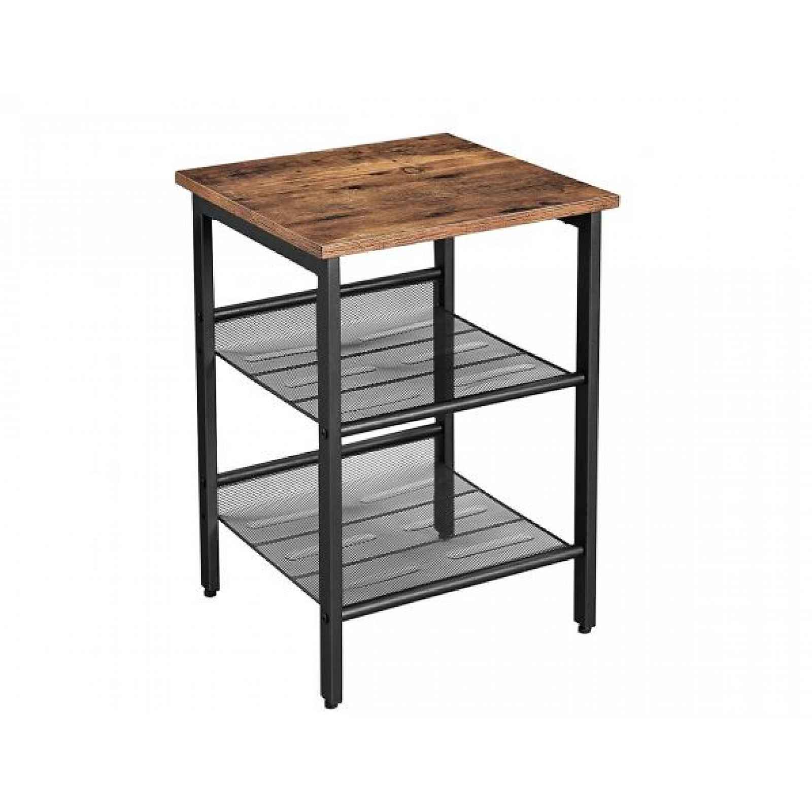 Odkládací stolek Industrial T23 nabízíme skladem v kombinaci rustikálně hnědé desky a matně černé kovové podnože. Příruční stolek nabízí úložný prostor ve 2 otevřených policích s nosností 5 kg. Výškově nastavitelné nožičky zaručují vysokou stabilitu a nosnost až 20 kg. Dodáváme jej v demontu. Industriální styl je nevšední styl bydlení a doporučujeme jej do větších prostor. Ideální je místnost s dostatkem oken a s vysokými stropy. Zařiďte si svůj domov nábytkem z kolekce Industrial. Ať už potřebujete konferenční či TV stolek v obývacím pokoji, psací stůl, komody a regály v pracovně či kanceláři.