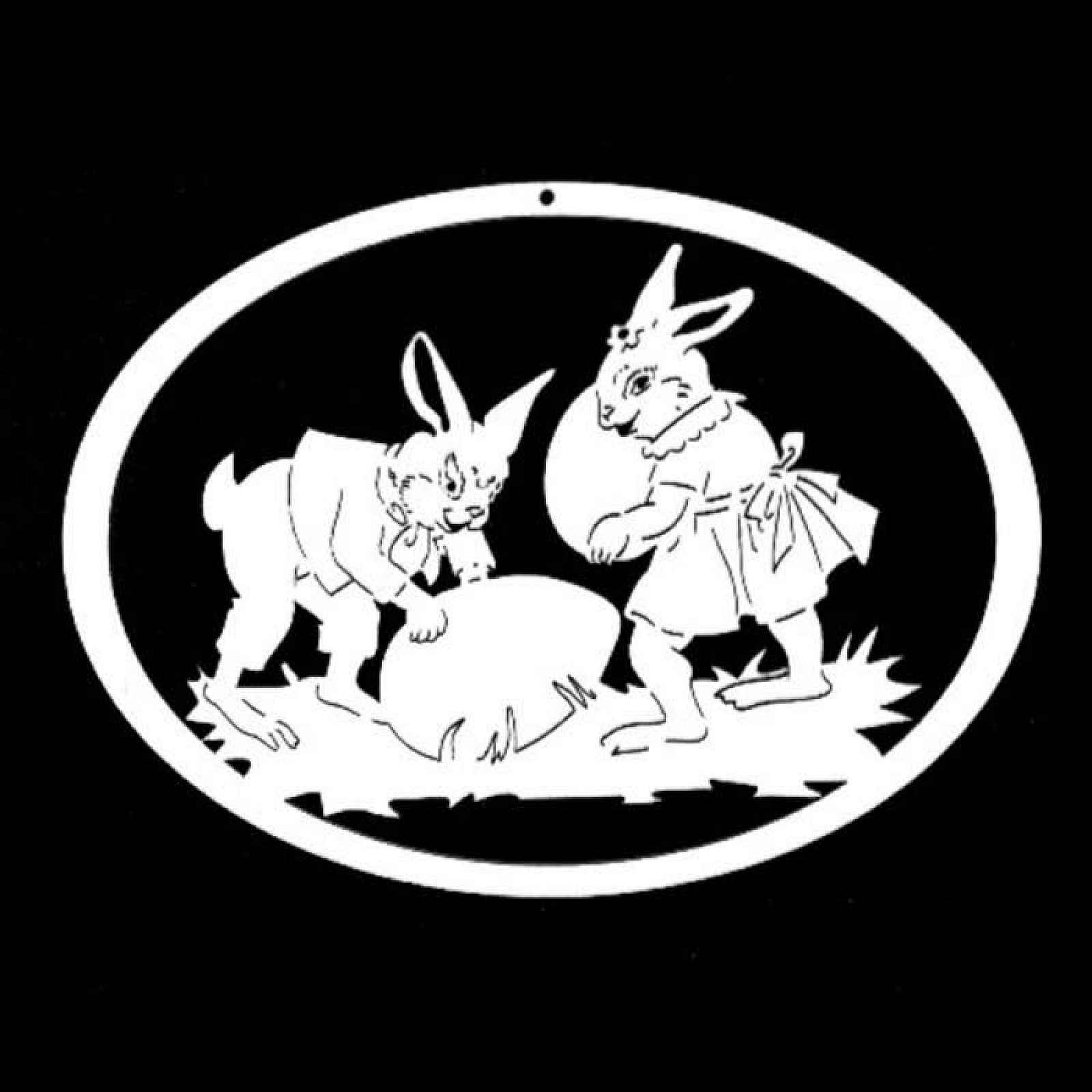 Ozdoba dřevění zající s vejci v oválu přírodní 21cm