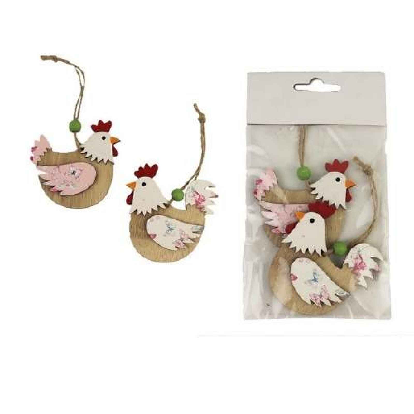 Ozdoba slepice 2ks dřevo přírodní/bílá 7cm