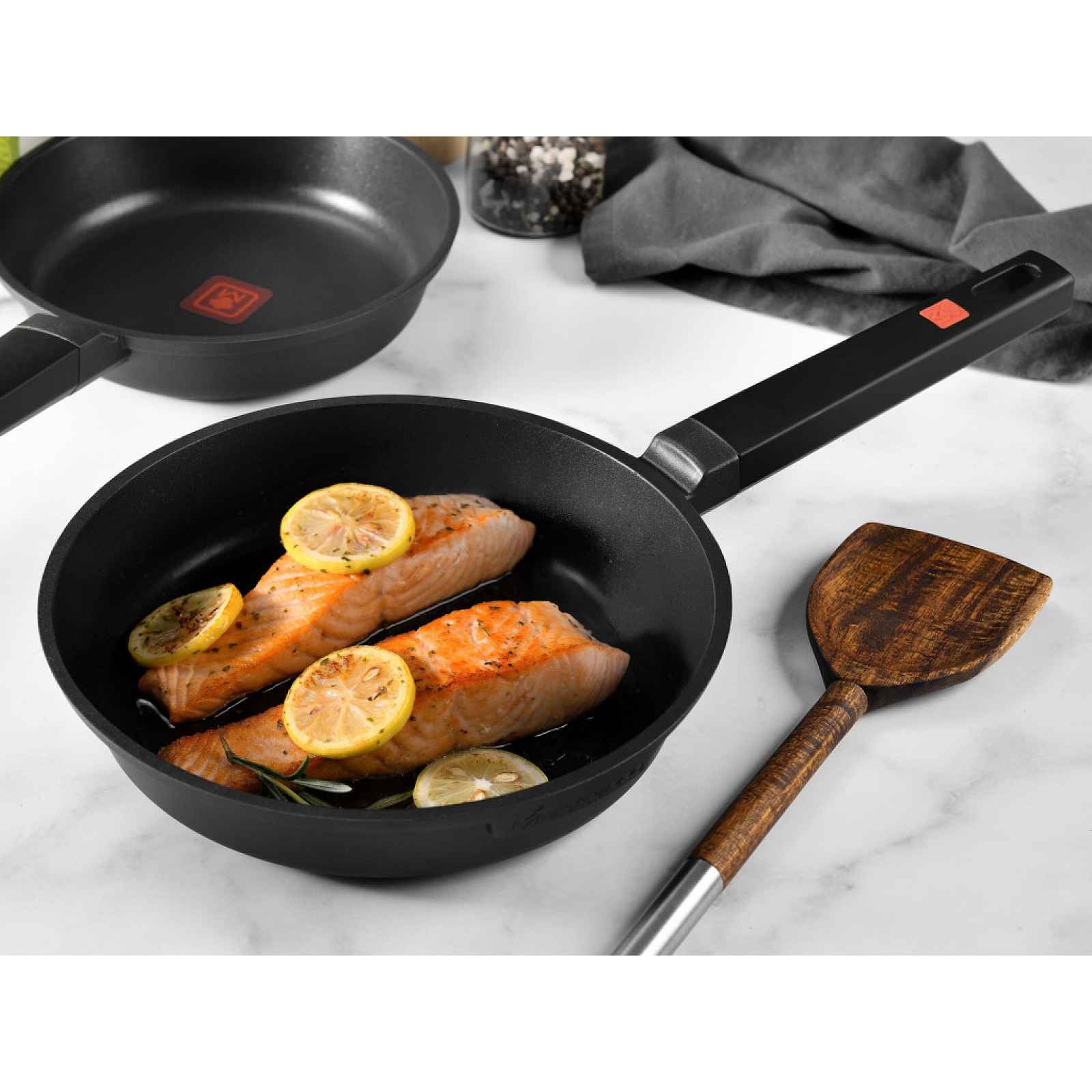 Pánev o průměru 20 cm z litého hliníku kombinuje kvalitu, výkon a moderní design. Perfektní pro všestranné vaření. - průměr: 20 cm - výška: 4,5 cm - materiál: litý hliník (zajišťuje velmi rovnoměrné rozložení tepla) - nepřilnavý povrch s diamantovými částicemi: vnitřní vrstva je ošetřena PPG Eterna s diamantovými částicemi, která zlepšuje odolnost a usnadňuje smažení i čištění - technologie thermospot/heatdot: speciální indikátor teploty se rovnoměrně nahřeje a signalizuje ideální začátek vaření - měkká bakelitová rukojeť s vloženým silikonem - plně kompatibilní se všemi typy varných desek včetně indukce bez mezer - údržba: doporučeno mýt v ruce, ale vhodná i do myčky nádobí - ideální pro přípravu menších porcí, snídaní nebo rychlých jídel - barva: černá