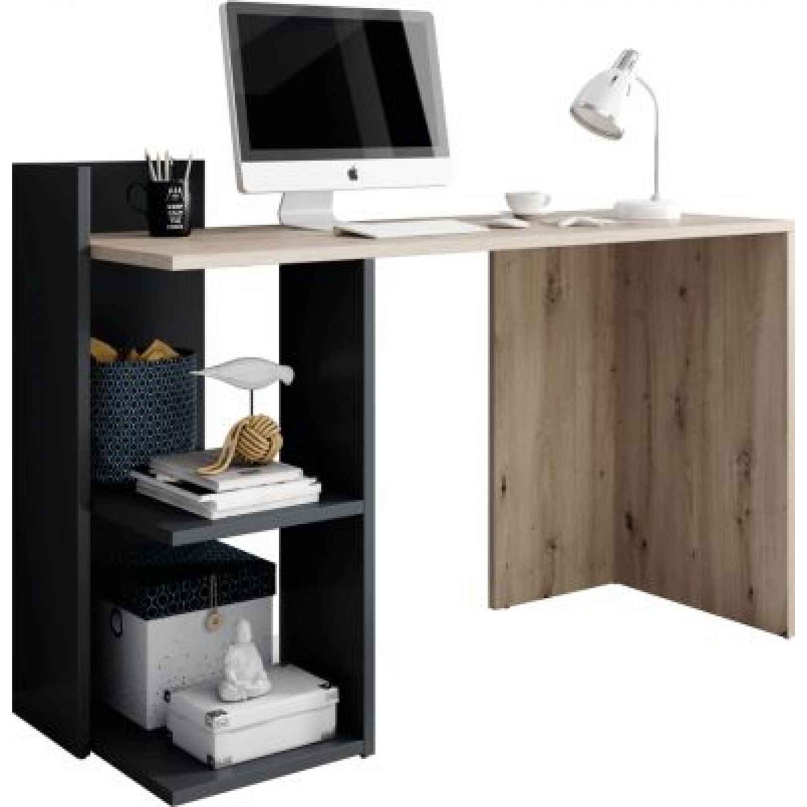 PC stůl ANDREO, dub artisan/grafit. Materiál: DTD laminovaná Barva: dub artisan / grafit-antracit. Výška stolu: 75,5 cm Tloušťka materiálu: 16 mm. Otevřený úložný prostor. S policemi. Dodáváme v demontu.