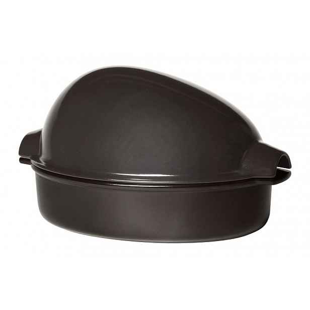 Emile Henry oválný keramický pekáč na drůbež s poklicí, 5 l, pepřová