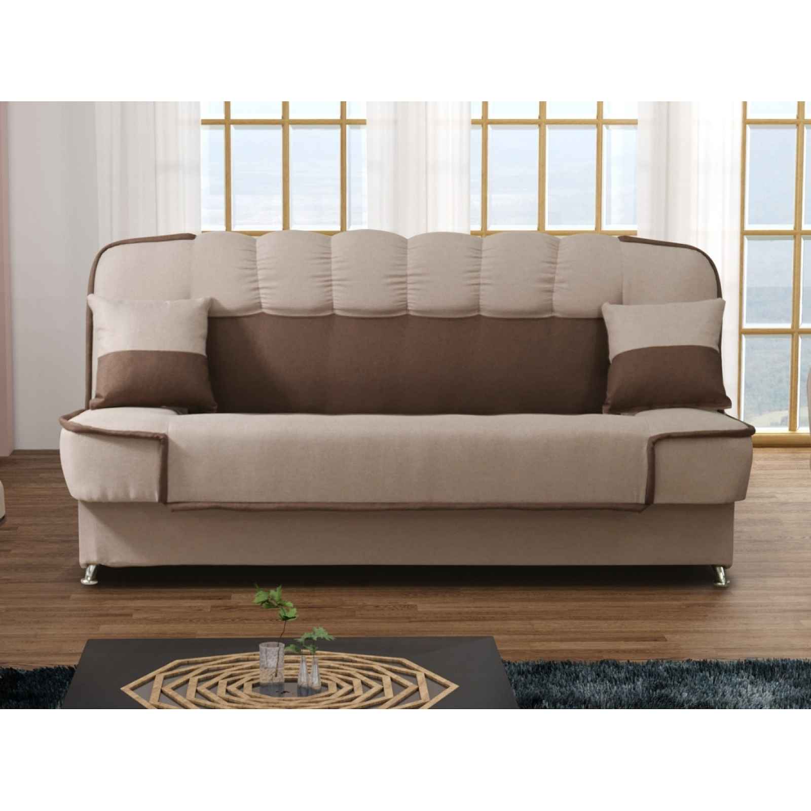 Rozkládací pohovka Potahová látka: malmo 08 = béžová látka / malmo 26 = hnědá látka(ve středu pohovky a na lemech) Obrázek rozložené pohovky je ilustrativní - jiná barva!Materiál: pružiny bonell, polyuretanová pěna T25 Rozměry (dxšxv): 195 x 88 x 95 cm Výška sedu: 48 cm Hloubka sedu: 53 cm Prostor pro spaní: 190 x 115 cm Rozměry úložného prostoru: 168 x 73 cm Nohy chromované. Záruka 24 měsíců.