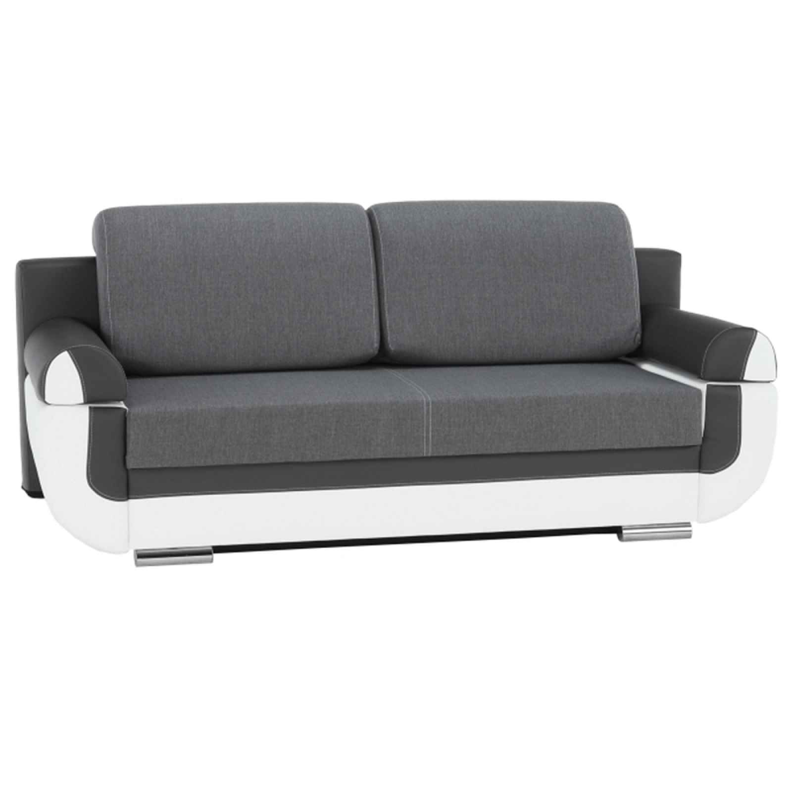 Rozkládací pohovka Pohovka je vhodná pro každodenní spaní. Potahová látka: bílá a šedá ekokůže/Hugo 11 šedá Rozměry (šxvxh): 204 x 89 x 90 cm Výška a hloubka sedu: 42,5 x 52,5 cm Prostor pro spaní: 142 x 204 cm Materiál: bonellové pružiny, nožky - kov Pohovka má úložný prostor. Záruka 24 měsíců.