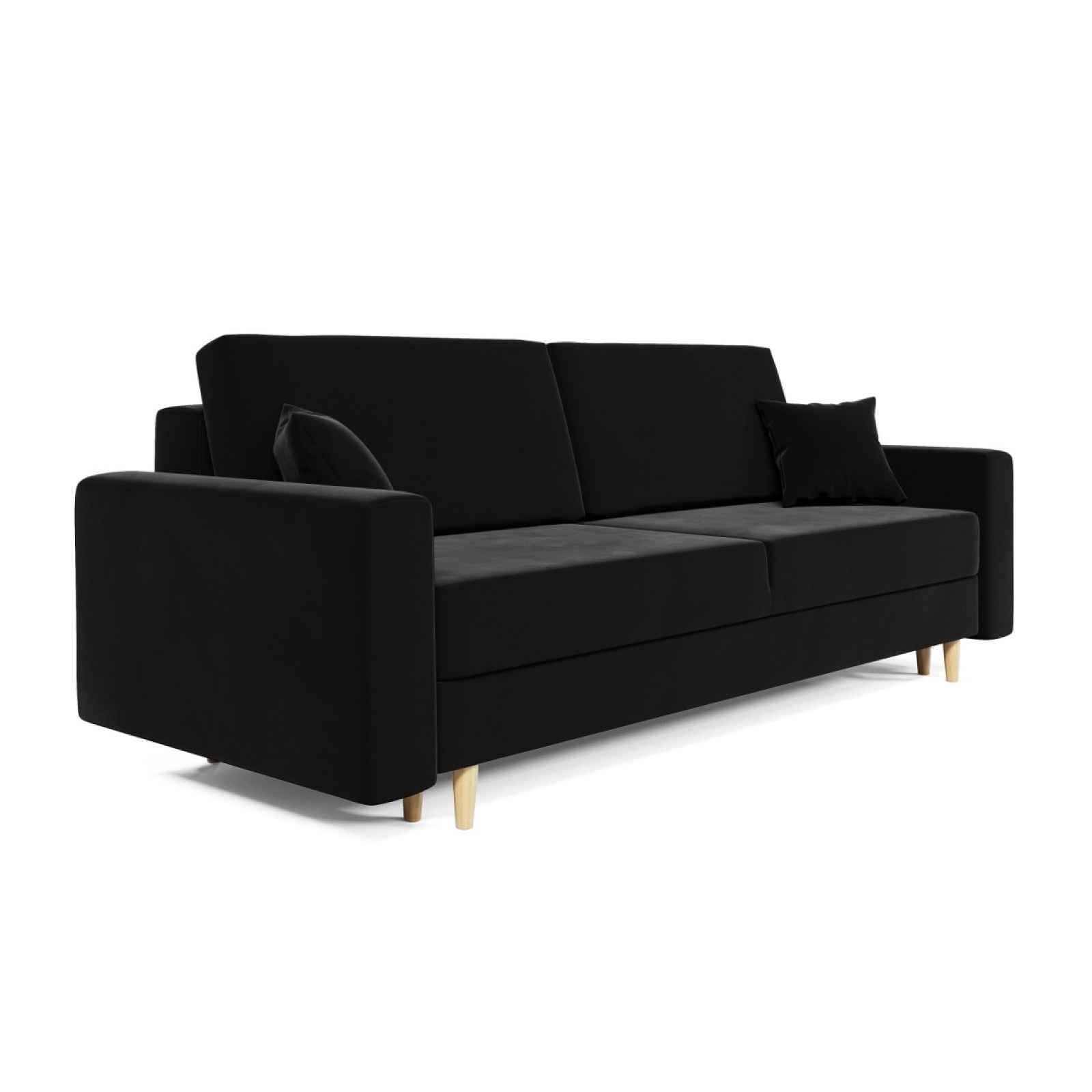 Rozkládací pohovka Barva: černá Potahová látka: plyš- itaka 15Rozměry: (dxhxv): 226 x 91 x 90 cm - výška sedu: 46 cm - hloubka sedu s polštáři: 52 cm- prostor pro spaní: 200 x 136 cm Záruka 24 měsíců