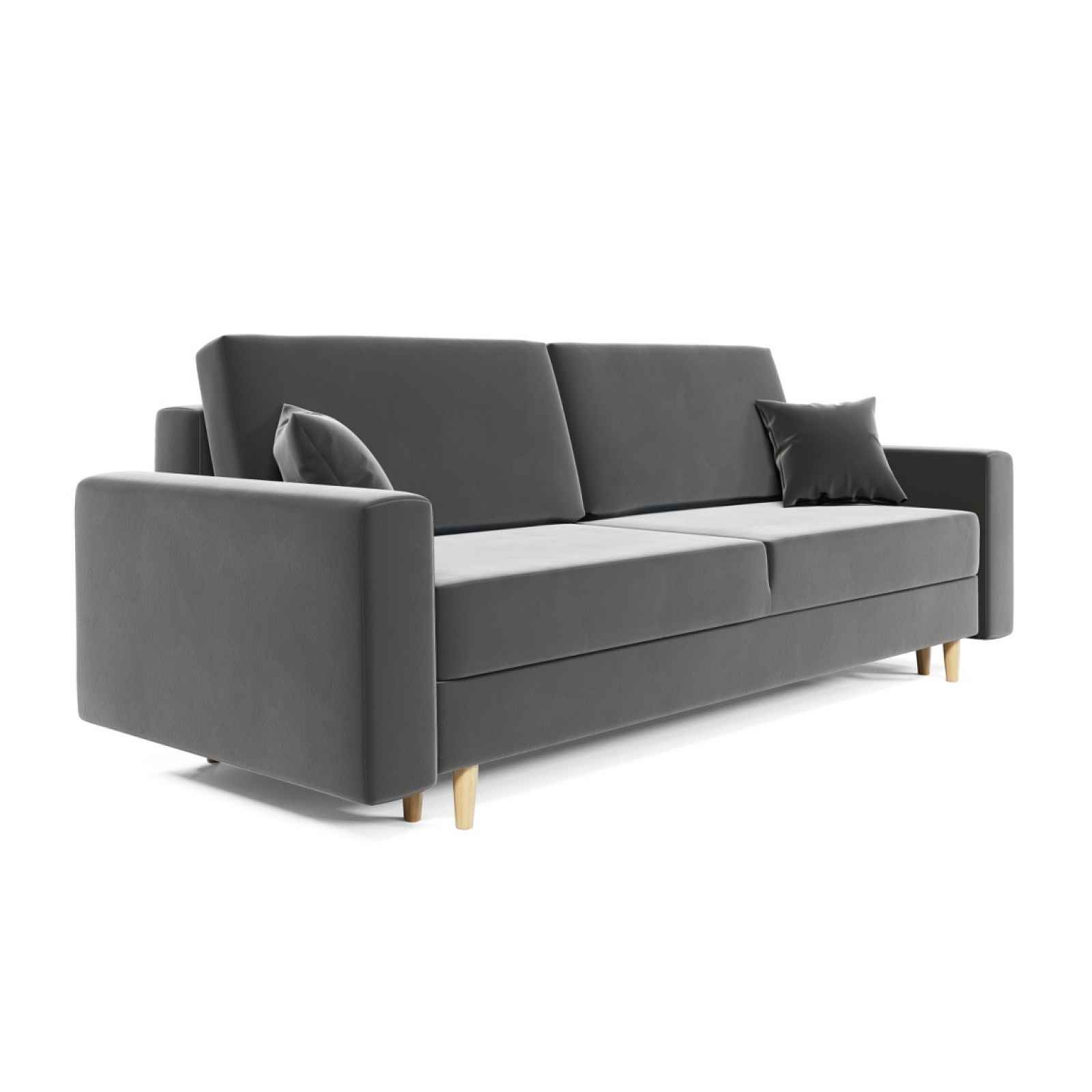 Rozkládací pohovka Barva: středně šedá Potahová látka: plyš- itaka 14Rozměry: (dxhxv): 226 x 91 x 90 cm - výška sedu: 46 cm - hloubka sedu s polštáři: 52 cm- prostor pro spaní: 200 x 136 cm Záruka 24 měsíců