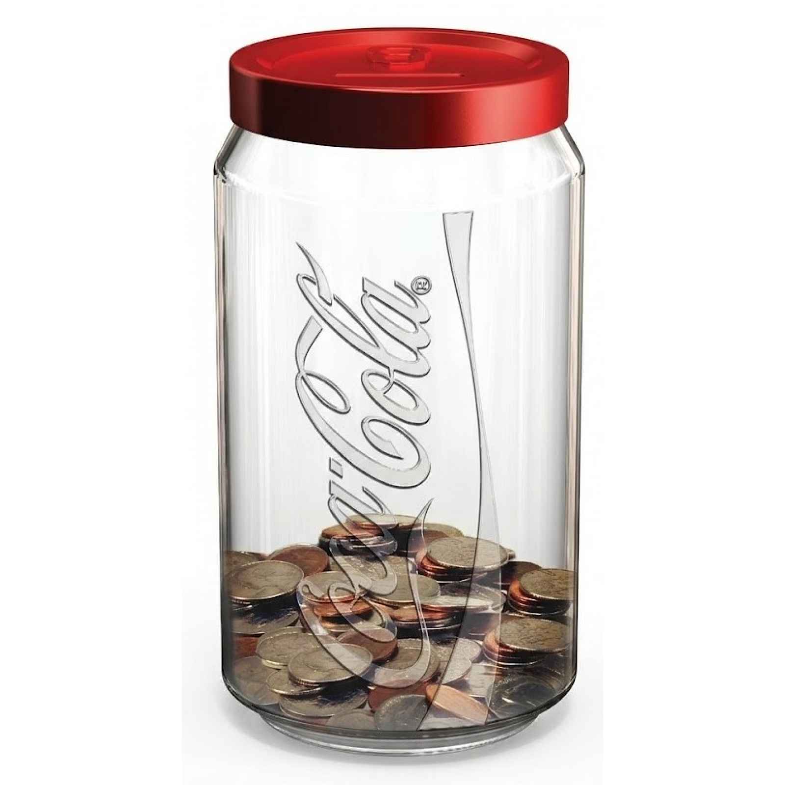 Stylová skleněná pokladnička na mince v klasickém ikonickém stylu Coca Cola. Objem 1 litr. Originální pokladnička Coca-Cola kombinuje klasický ikonický styl s praktickým využitím. Robustní skleněná nádoba s červeným víkem a otvorem na mince je ideální pro ukládání drobných, stylovou dekoraci nebo jako dárek pro fanoušky legendární značky. Objem 1 litr. - materiál: čiré sklo - objem: 1 l - motiv: Coca Cola - červené šroubovací víko s otvorem pro mince - ideální jako pokladnička, dekorace, sběratelský kousek