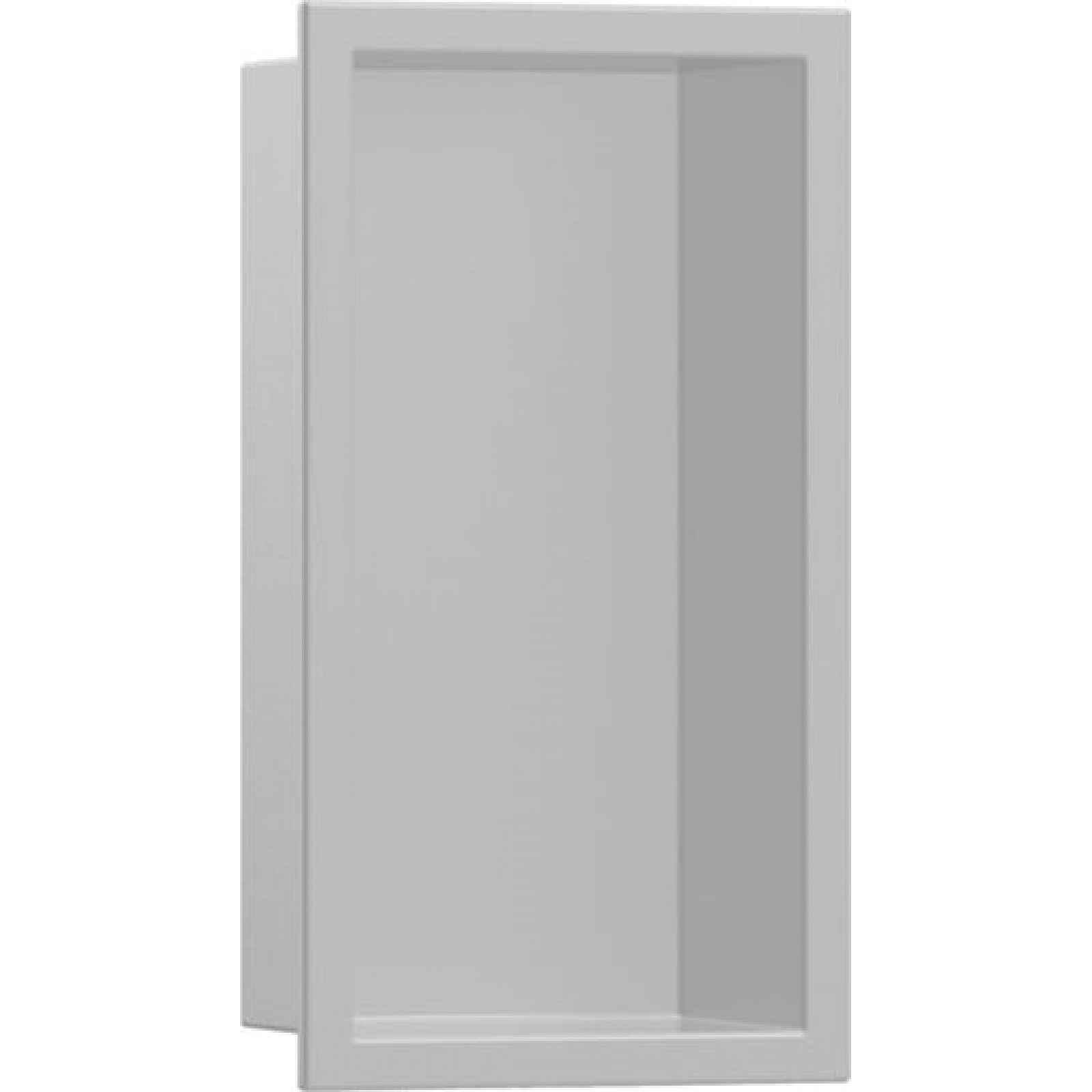 Polička v provedení betonově šedá. Šířka tohoto koupelnového doplňku od značky Hansgrohe je 24 cm a je vyroben z materiálu nerez.