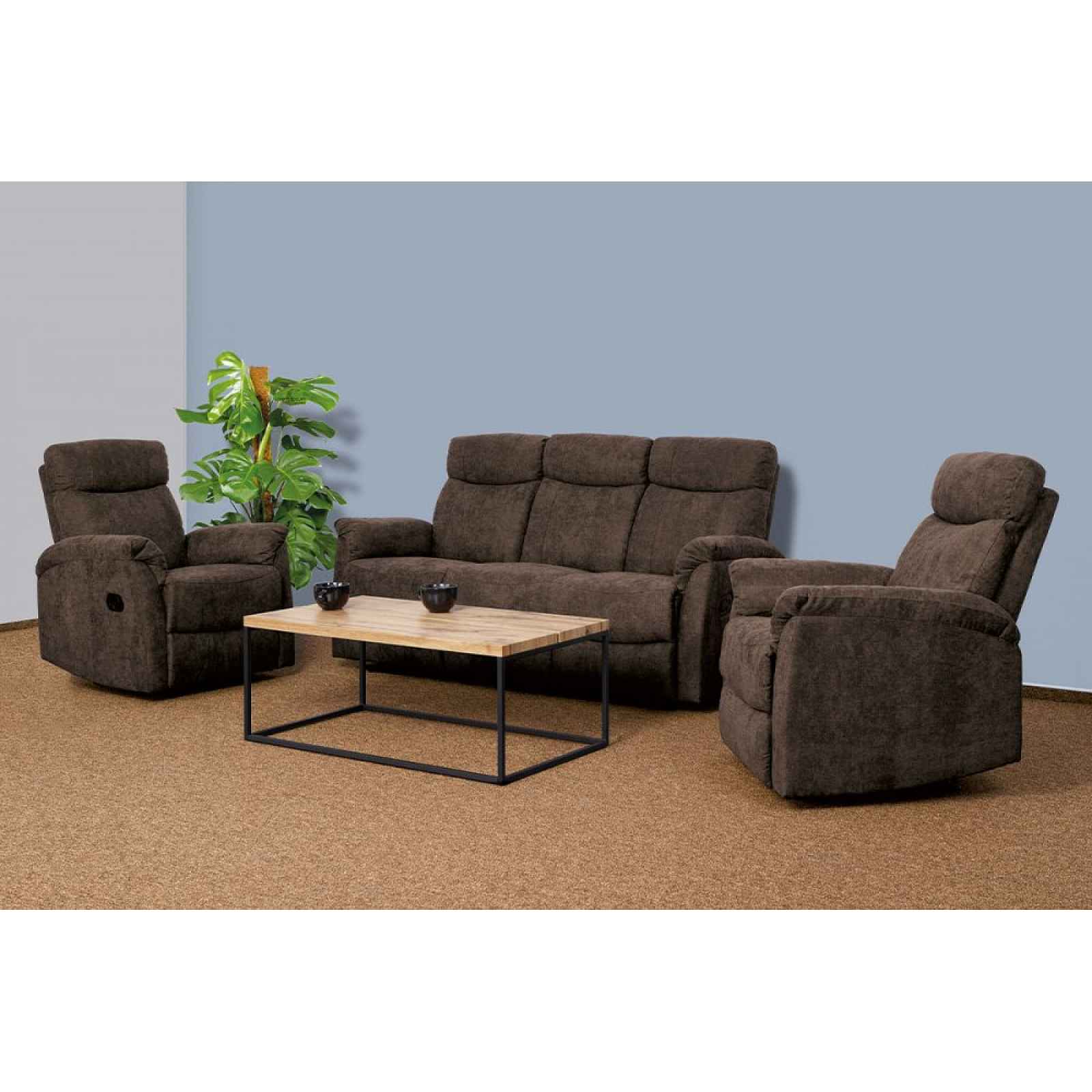 Atraktivní polohovatelná sedací souprava se skládá ze 3místné sedačky + 2 křesel. Potah je z šedé látky. Kostra z masivního dřeva, boky jsou z překližky. Mechanické konstrukce jsou kovové, černě lakované. Výplň z PU pěny 28D na sedacích plochách, 22D na bocích a 3 vlnovcových pružin v každém místě sedáku. Funkce - sedačka – polohování dvou krajních modulů ve dvou pozicích s aretací, křesla – polohování ve dvou pozicích s aretací. Zadní strana sedačky je čalouněná, je možné jí umístit do rohu i středu místnosti. Nosnost sedačky je 3 x 100 kg, nosnost křesla 130 kg.Barva:hnědá (dekor broušená kůže)šedá Výběr látky zvolte ve variantě produktu. Rozměry sedačky: šířka: 186 cm hloubka: 94 cm výška: 100 cm výška sedu: 50 cm Rozměry křesla:šířka: 80 cm hloubka: 91 cm výška: 100 cm výška sedu: 50 cm Materiál: látka / kov / dřevo / překližka Nosnost:sedačka: 300 kg křeslo: 130 kgHmotnost: 137 kg Dodáváno v demontu.