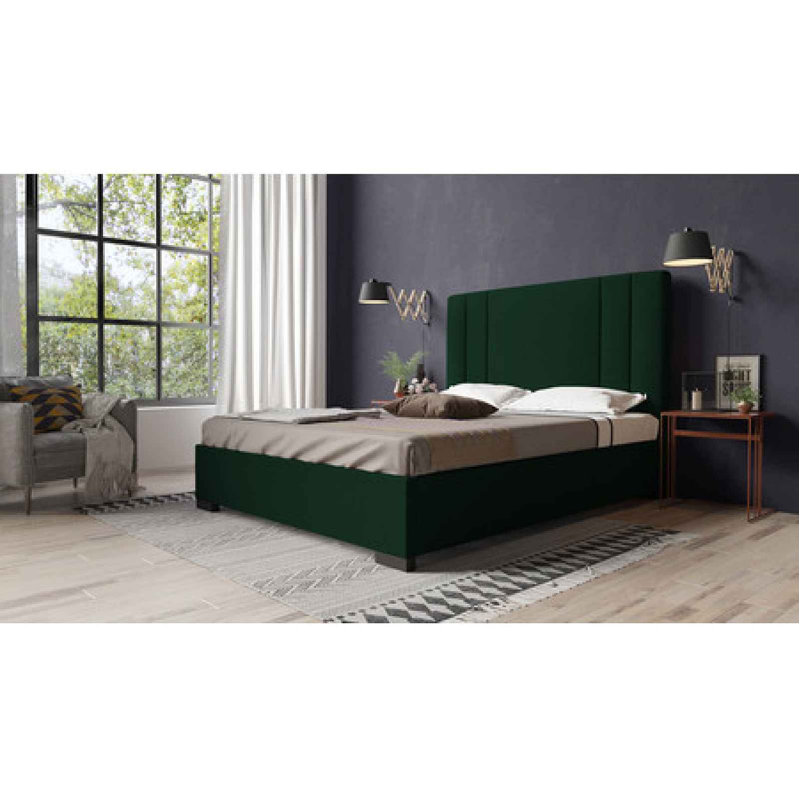 Postel BRAYDEN 09 STANDARD 120x200 cm - černé nohy Tmavě zelená