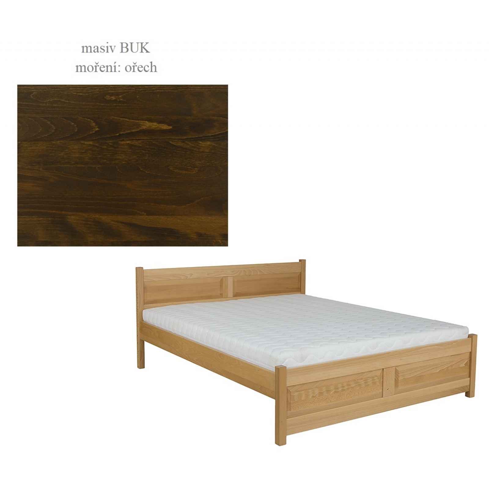 Postel 160x200 cm V ceně postele není rošt ani matrace, vhodný rozměr je 160x200 cm.Barva: ořech Materiál: masiv bukRozměry (šířka x délka): 168 x 208 cm Ložná plocha: 160 x 200 cm Výška čela za hlavou: 83 cmVýška čela u nohou: 45 cmVýška pro uložení roštu: 27 cmVýška bočnice od země po spodní hranu: 25 cmVýška bočnice od země po horní hranu: 40 cmDodáváno v demontu.