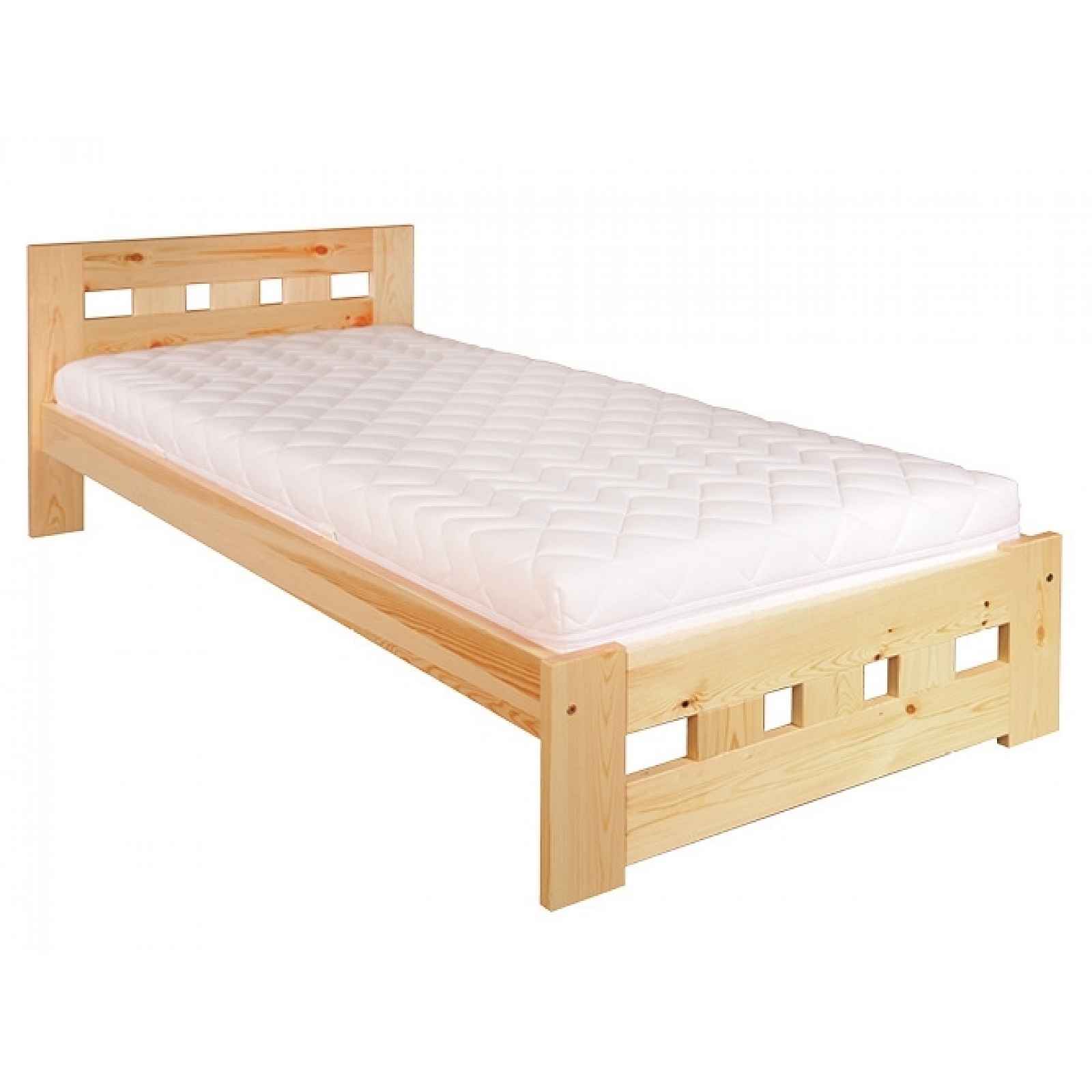 Postel 80x200 cm V ceně postele není rošt ani matrace, vhodný rozměr je 80x200 cm. Barva: vyberte si níže Materiál: masiv borovice (tloušťka 2,5 cm) Rozměry (šířka x délka): 89,3 x 205 cm Ložná plocha: 80 x 200 cm Výška čela za hlavou: 72,5 cm Výška čela u nohou: 35 cm Výška montování roštu: 24 cm Výška od podlahy ke spodní části lůžka: 22 cm Výška od podlahy k horní hraně boku: 34 cm Rozměr nohy postele: 12,2x2,5 cm Dodáváno v demontu. Záruka 24 měsíců.