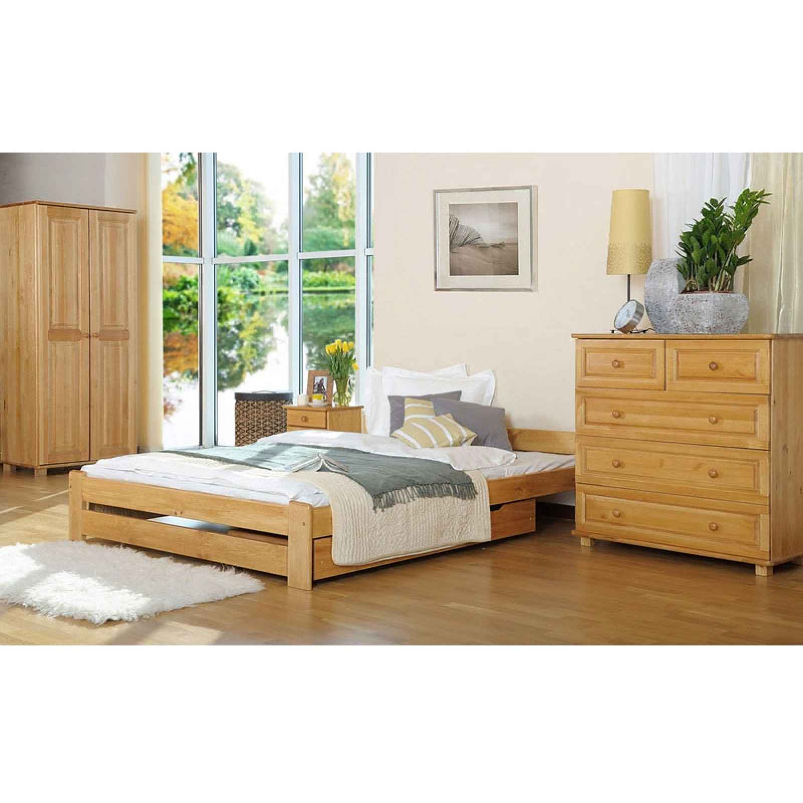 Postel 160x200 cm OBRÁZEK JE ILUSTRATIVNÍ - v ceně postele není úložný prostor! Materiál: masiv borovice, moření - olše, tloušťka 2,6 cm Postel je ručně barvená, následně lakovaná, broušená a opět lakovaná. Postel má doplňující výztužnou desku, kde je umístěna pátá podpěrná noha. Rozměry: šířka x délka: 167,5 x 206 cm ložná plocha: 160,5 x 200,5 cm výška čela za hlavou: 49,5 cm výška čela u nohou: 33,5 cm výška od země ke spodní části lůžka: 19,5 cm výška od země k matraci: 24,5 cm hloubka od roštu po okraj postele: 7 cm Postel je dodávána včetně laťkového roštu (12 latí), bez matrace. Dodáváno v demontu. Záruka 24 měsíců.