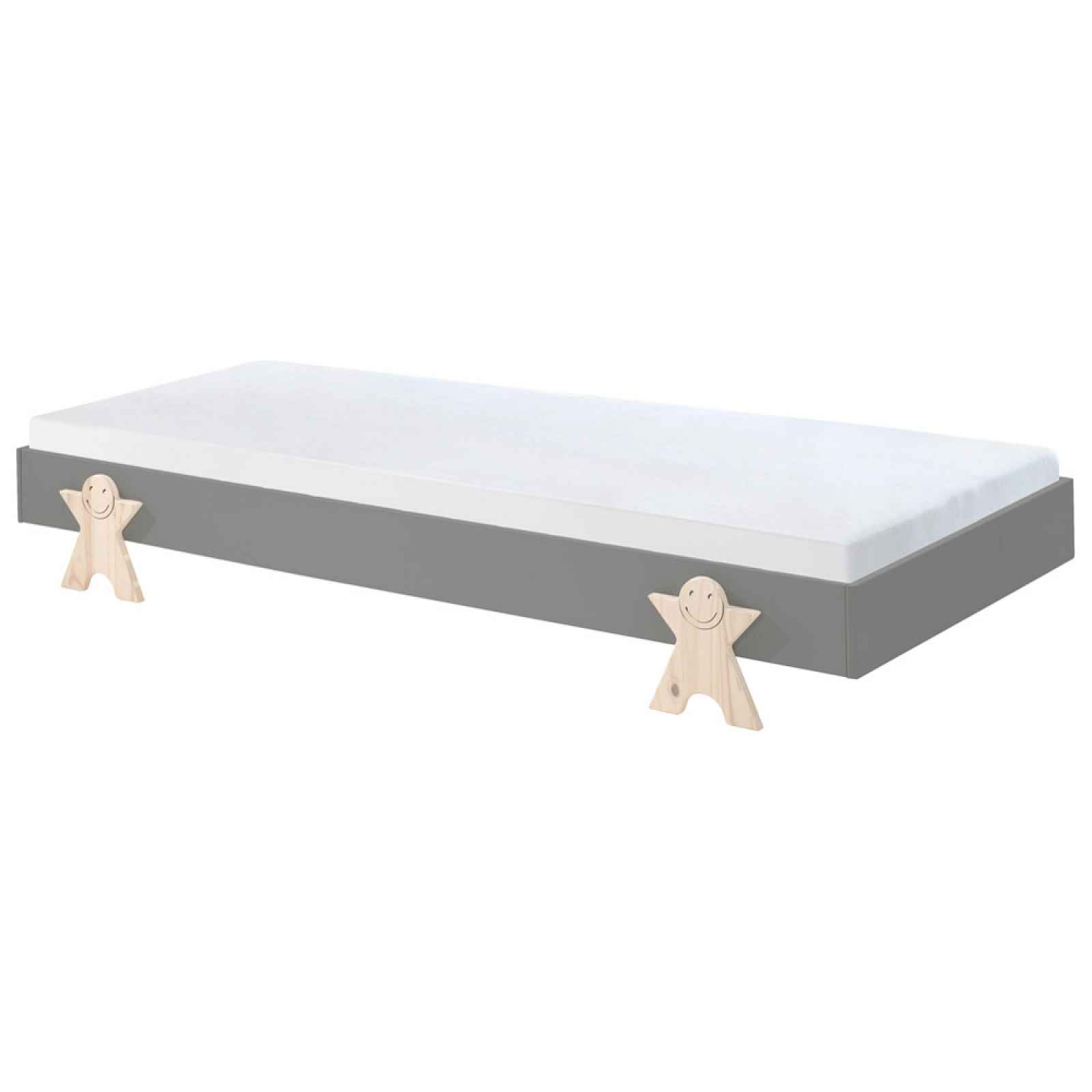 Toto zboží je k dispozici POUZE ONLINE. Hravý design pro útulné noci: V dětské posteli MODULO od značky MID.YOU zažije váš malý mazlíček každou noc vzrušující dobrodružství! Tento nábytek na spaní o rozměrech cca 203,6 x 93,8 x 27,5 cm (D x Š x V) je vyroben z masivního borového dřeva. S šedou povrchovou úpravou dodává dětskému pokoji přívětivý šmrnc a tvoří tak přesně ten správný základ pro klidný spánek. Nohy v přírodní barvě jsou obzvláště poutavé díky svému neobvyklému tvaru: Postavičky rozdávají štěstí svými usměvavými tvářemi a zároveň podněcují představivost těch nejmenších – dobrodružné sny jsou tak zaručeny! S lehací plochou cca 90 x 200 cm nabízí postel dostatek prostoru k pohodlnému ležení ve všech polohách. Součástí postele je také lamelový rošt se 16 lamelami, který unese cca 75 kg. Teď už jen stačí v internetovém obchodě Möbelix objednat tu správnou matraci! Tip: Dětská postel MODULO je u nás dostupná i v jiných verzích a jako praktická stohovatelná postel je jako stvořená pro veselé večírky! Upozorňujeme, že toto zboží není vystaveno v našich pobočkách, je možné je