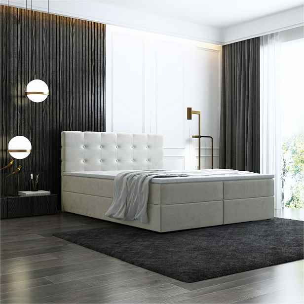Postel Inez 180x200 cm, krémová strukturovaná látka