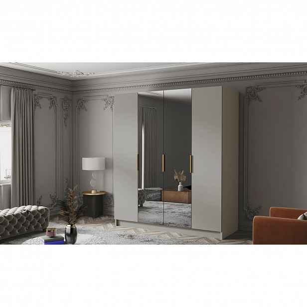 Šatní skříň SALVADOR 200 III - béžová/zlaté úchytky