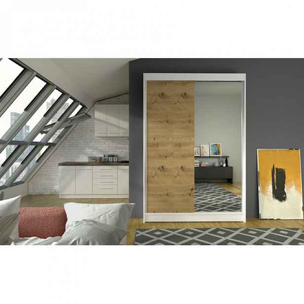 Šatní skříň LINO II šířka 120 cm - bílá/dub artisan