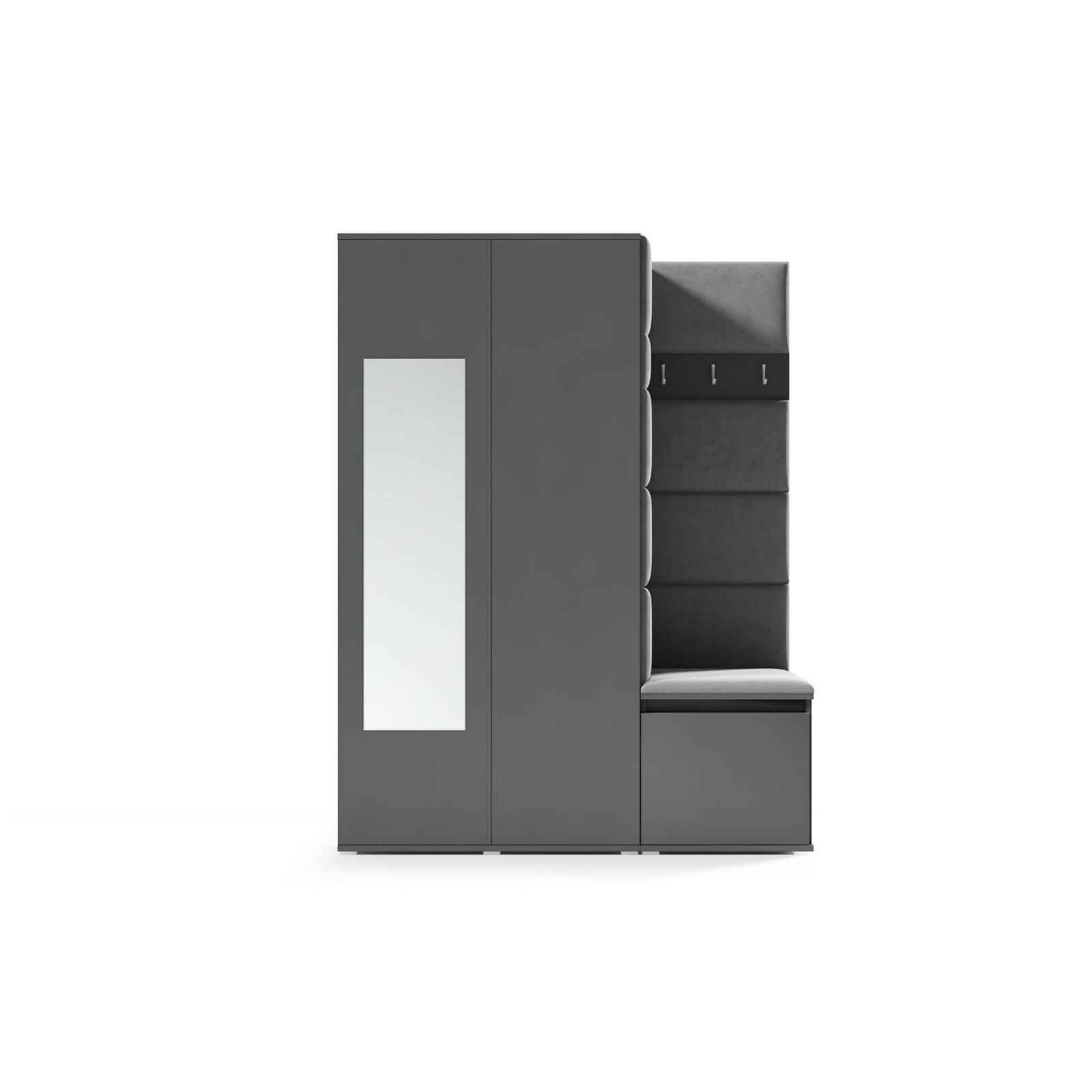 Předsíňová stěna AMI 11, je moderní a praktický prvek do vstupních prostor vašeho domu. Předsíňová stěna obsahuje deset čalouněných panelů, které se montují přímo na stěnu za pomoci lepidla. Potah botníku je tkanina TRINITY, která je měkká a příjemná na dotek. Jedná se o velurovou tkaninu. Předsíňová stěna se skládá z několika částí. Údržba: Vyhněte se použití chemikálií. Lepidlo není součástí balení.