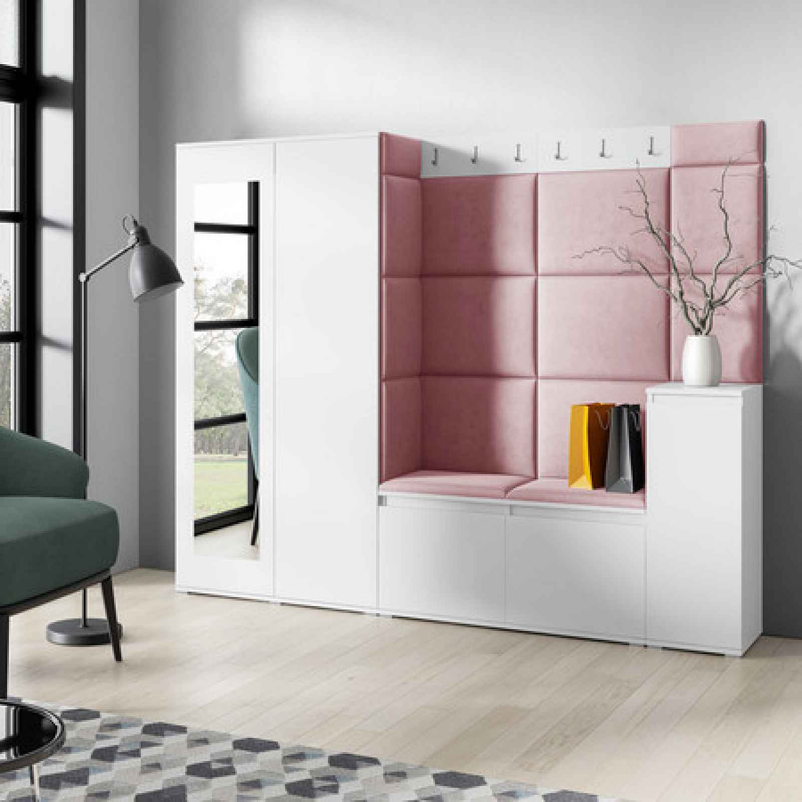 Předsíňová stěna EMI 27 Světle růžová Bílá