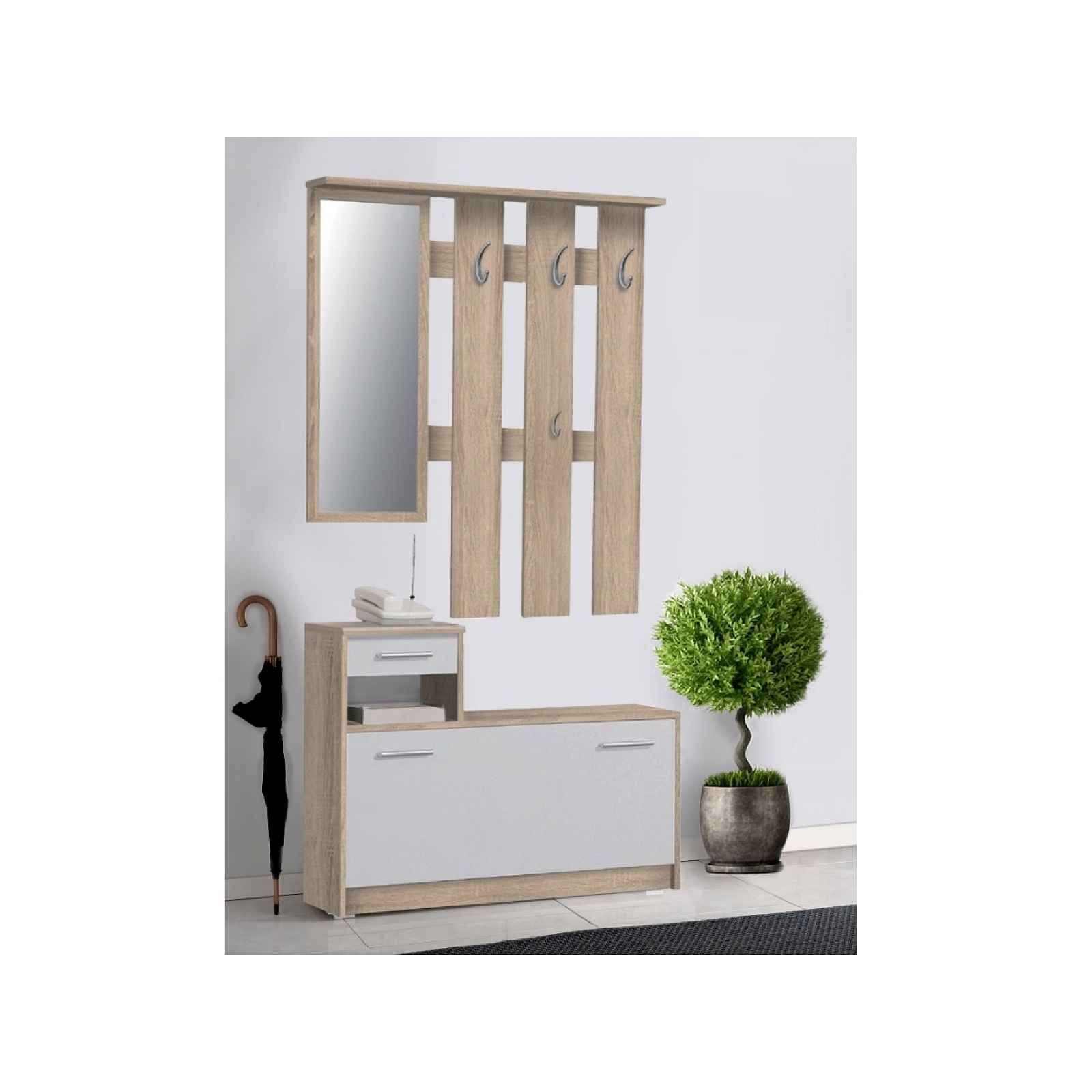 Předsíňová stěna Barva: dub sonoma/bílá Kvalitní materiál LTD. Rozměry (šxvxh): 97,5 x 180 x 25 cm Dodáváno v demontu. Záruka 5 let.