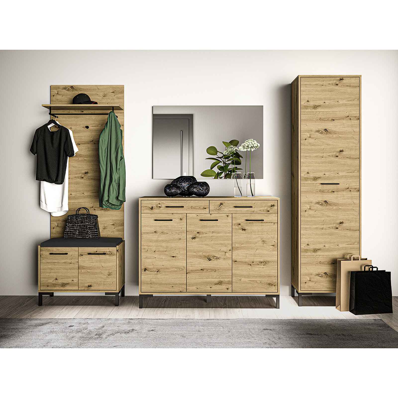 Bytový systém Nevil Dodáváno v dekoru dub artisan ABS hrany Vyrobeno z laminovaných desekLed světla nejsou součásti, lze dokoupit. Viz souvísející produkty Rozměry: (šířka x výška x hloubka) viz galerie