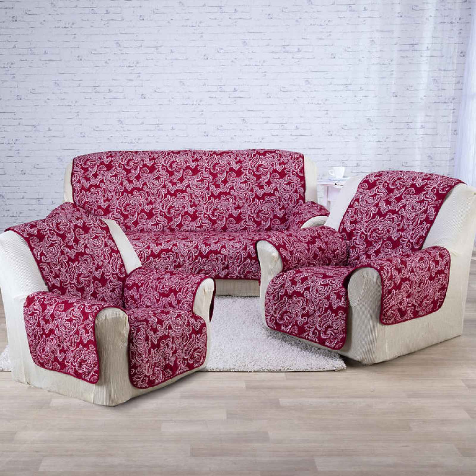 Se sametově hebkým povrchem Přehoz na sedací soupravu z pevného mikrovlákna ochrání vaše křeslo i sedačku před špínou a opotřebením. Přehozy ve vínové barvě jsou prošívané a díky výraznému květinovému vzoru se stane dominantou pokoje. Z rubové strany jsou potahy jednobarevné bez vzoru. Zakoupit můžete zvlášť přehoz na křeslo o rozměru 177 x 185 cm (středová část 57 x 185 cm, kryty područek - každá 60 x 55 cm) nebo na trojsedačku 280 x 185 cm (středová část 160 x 185 cm, kryty područek - každá 60 x 55 cm). Přehozy nejsou vhodné na kožené či koženkové soupravy, neboť z nich kloužou. Doporučujeme je prát na 30 °C. Materiál: 100 % polyester Rozměry přehozu na křeslo: 177 x 185 cm Rozměry přehozu na trojkřeslo: 280 x 185 cm Doporučené praní: 30 °C