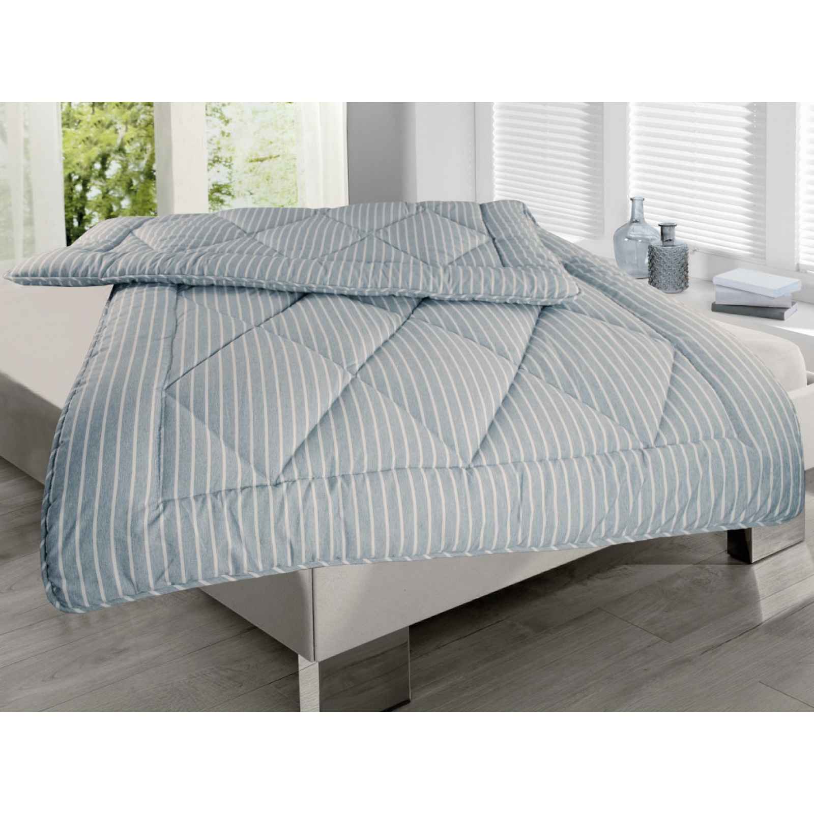 Prošívaná přikrývka 140x200 cm v kvalitním zpracování s moderním a nadčasovým pruhovaným designem. Peřinu lze použít i bez ložního prádla. - rozměry: 140×200 cm - materiál: 100% polyester - barva: modrá, šedá - vzor: pruhy - lze použít i bez ložního prádla - měkký potah z mikrovlákna příjemný na dotek - kvalitní zpracování - snadné praní a údržba - praní: možnost praní na 40 °C - lze sušit v sušičce