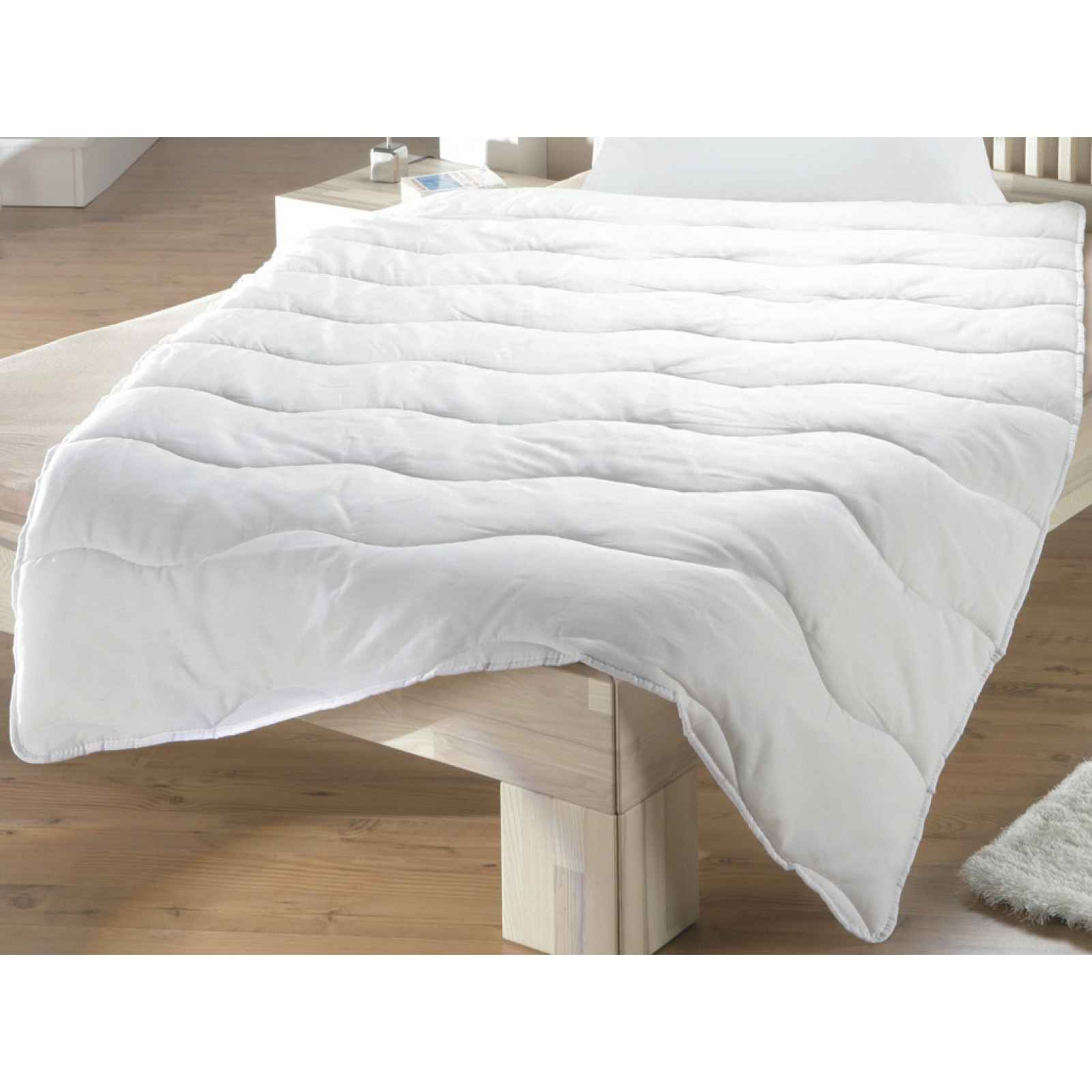Bílá deka v klasickém rozměru 140x200 s vlnitým prošíváním cm poskytuje pohodlný spánek. Bílá peřina v klasickém rozměru 140x200 s vlnitým prošíváním cm poskytuje pohodlný spánek. Je vyrobena z moderních syntetických vláken, která jsou lehká, vzdušná a dobře drží svůj tvar. Díky snadné údržbě s možností praní na 60 °C je vhodná pro alergiky a pro rodiny s dětmi. - rozměry: 140x200 cm - potah: 100% polyester - barva potahu: bílá - vnitřní výplň: 100% polyester - snadná údržba - praní: možnost praní na 60 °C - lze sušit v sušičce