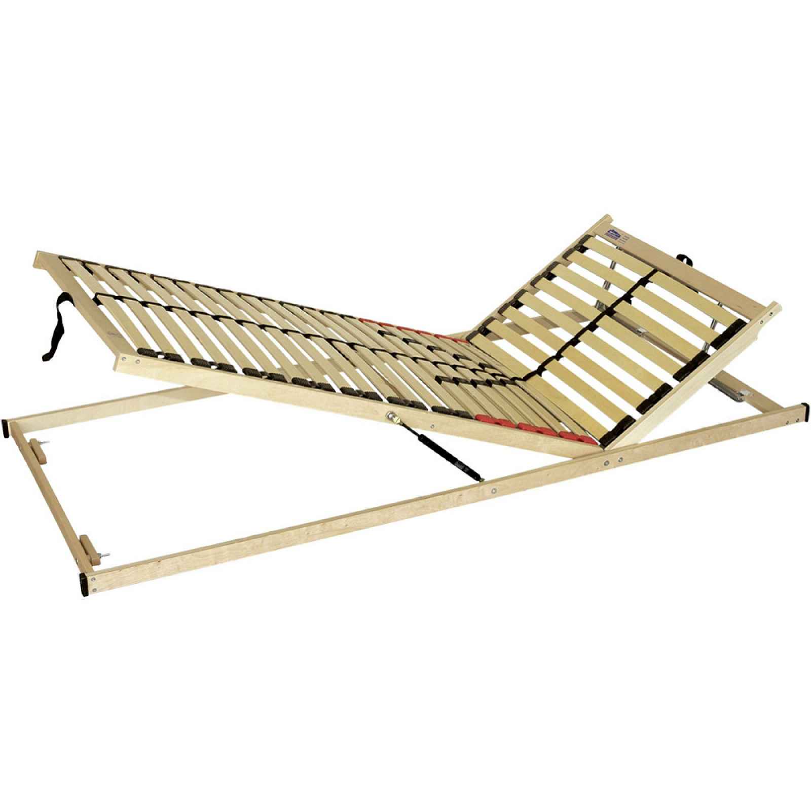 Lamelový rošt plohovatelný pod hlavou a nohama, s plynovými pístami, se zvýšenou nosností do, 150 kg, PL: 80/200 cm., s 28 lamelami,s 3 zónami 8 zdvojených lamel pro zpevnění.Š/V/H: cca 80/6/200 cm