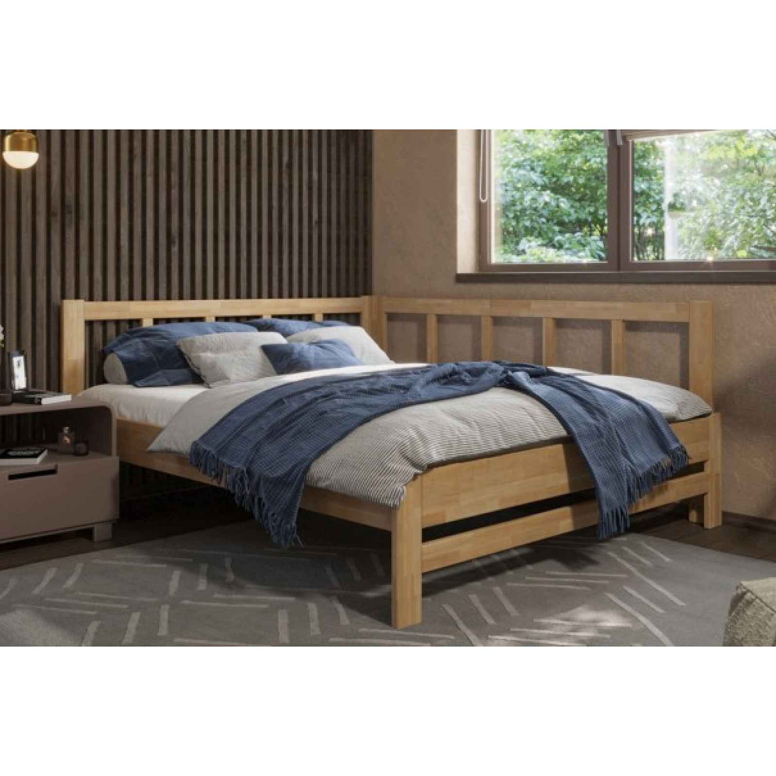 Milujete vůni dřeva? Pak je tato celomasivní postel perfektní volbou pro Vás, jelikož je stavěná z nejkvalitnějších dřevin buku a dubu, které vytvoří nenapodobitelnou atmosféru ve Vaší ložnici. Unikátní a čistý design sedne do každé ložnice tak, aby zůstala prostorná. Klademe si veliký důraz na kvalitu, a proto pro vás máme prodlouženou záruku 5 let na konstrukční pevnost. Ať už si vyberete buk nebo dub, u obou máte jistotu kvalitního zpracování a dlouhé životnosti. Obě dřeviny jsou zpracovány cinkovou metodou, což jednoduše řečeno znamená, že jsou zpracovány tak, aby vám postel nepopraskala a nezkroutila se. Další zárukou kvality je způsob spojení jednotlivých částí postele k sobě. Tato metoda se nazývá ,,kov na kov", díky ní můžete postel rozmontovat a zase smontovat kolikrát chcete, aniž byste narušili její pevnost nebo zapříčinili vrzání Dokonale padne do vašeho interiéru, protože můžete vybírat hned z několika barev. My pro vás poté zařídíme správnou povrchovou úpravu: - Lakování – dokonale ochrání před znečištěním a domácími mazlíčky - Výživný ekologický olej – zajistí ještě delší živnost a výživu dřeva.