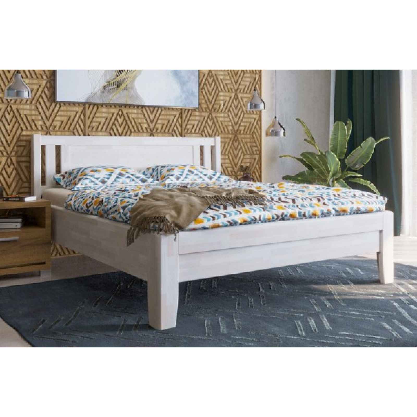 Celin K2 vyniká částečně plným hlavovým čelem s ozdobným vertikálně členěným ukončením zasazeným pod mírným úhlem do masivních nohou postele. Pro výrobu celomasivních postelí jsou používány výhradně dvě dřeviny. Moderní. čistý a hladký buk nebo majestátní dub s výraznou kresbou dřeva. Z pohledu pevnosti postele lze označit buk i dub za stejně tvrdé dřeviny, finální tvrdost je pak vždy dána místem původu dané dřeviny. Pocitově však jednoznačně vede nám známý majestátní dub se svou širokou korunou. Sama skutečnost, že právě na pilotech z dubu stojí Benátky, v nás evokuje pocit pevnosti a dlouhověkosti. Na výběr dvě varianty povrchové úpravy: Lakovaná. respektive mořená a lakovaná povrchová úprava, představující 10 barevných odstínů včetně přírodního provedení. Jedná se o kvalitní lak, tvořící odolnou ochranu povrchu postele. Běžnou údržbu a úklid lze provádět suchým nebo lehce vlhkým hadříkem. Povrchová úprava postele směsí oleje a vosku, přičemž olej proniká do hloubky 1 – 2 mm do dřeva a vosk zůstávající na povrchu. vytváří hedvábný lesk. Jedná se o kvalitní ekologickou povrchovou úpravu speciálními osmo oleji. Běžnou údržbu a úklid lze provádět suchým nebo lehce vlhkým hadříkem. Generální údržbu a oživení povrchu lze provést dalším nátěrem osmo oleje a následným vytřením do sucha. Pevnost: Všechny typy postelí mají pevné rohové spojení, skládající se z léty prověřené kombinace matice, šroubu a závrtné matice umožňující pohodlné dotažení. Na pevnost celého rámu postele je poskytována záruka 5 let. Výška hlavového čela: 105 cm. Výška nožního čela: 50 cm. Výška horní hrany bočnice od země: 50 cm. Vlastní výška bočnice: 27 cm. Hmotnost postele: Při výběru postele je potřeba brát zřetel i na vlastní hmotnost postele. neboť pohlcení kinetické energie je přímo úměrné hmotnosti postele. Rošty: Rošty jsou uloženy na smrkových latích, které lze při vlastní montáži postele připevnit ve 3 výškách k bočnici postele z důvodu optimálního nastavení výšky ložné plochy lůžka. Úložné prostory: Postel Celin je možné doplnit praktickým úložným prostorem v podobě přední nebo boční zásuvky nebo úložného boxu pod postel přístupného z horní části postele. Postel je standardně dodávána bez roštů a matrací. Postel je dodávána v demontovaném stavu. Montáž postele je možné si přiobjednat.