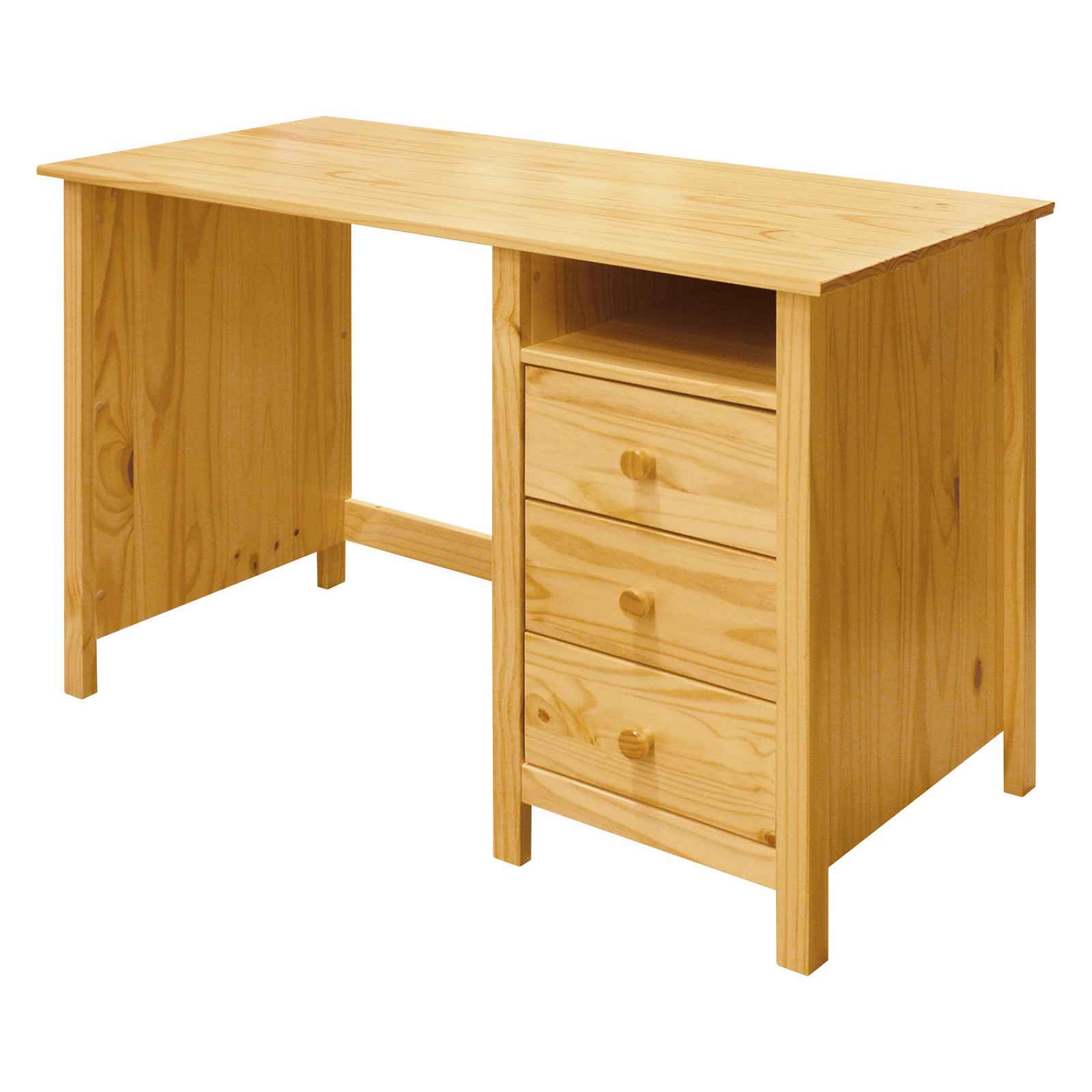 Psací stůl z masivu Stůl je lakovaný a má 3 zásuvky s kovovými pojezdy a 1 polici. Barva: borovice Rozměry (šxhxv): 120 x 54 x 74 cm Materiál: masiv Dodáváno v demontu, záruka 24 měsíců.