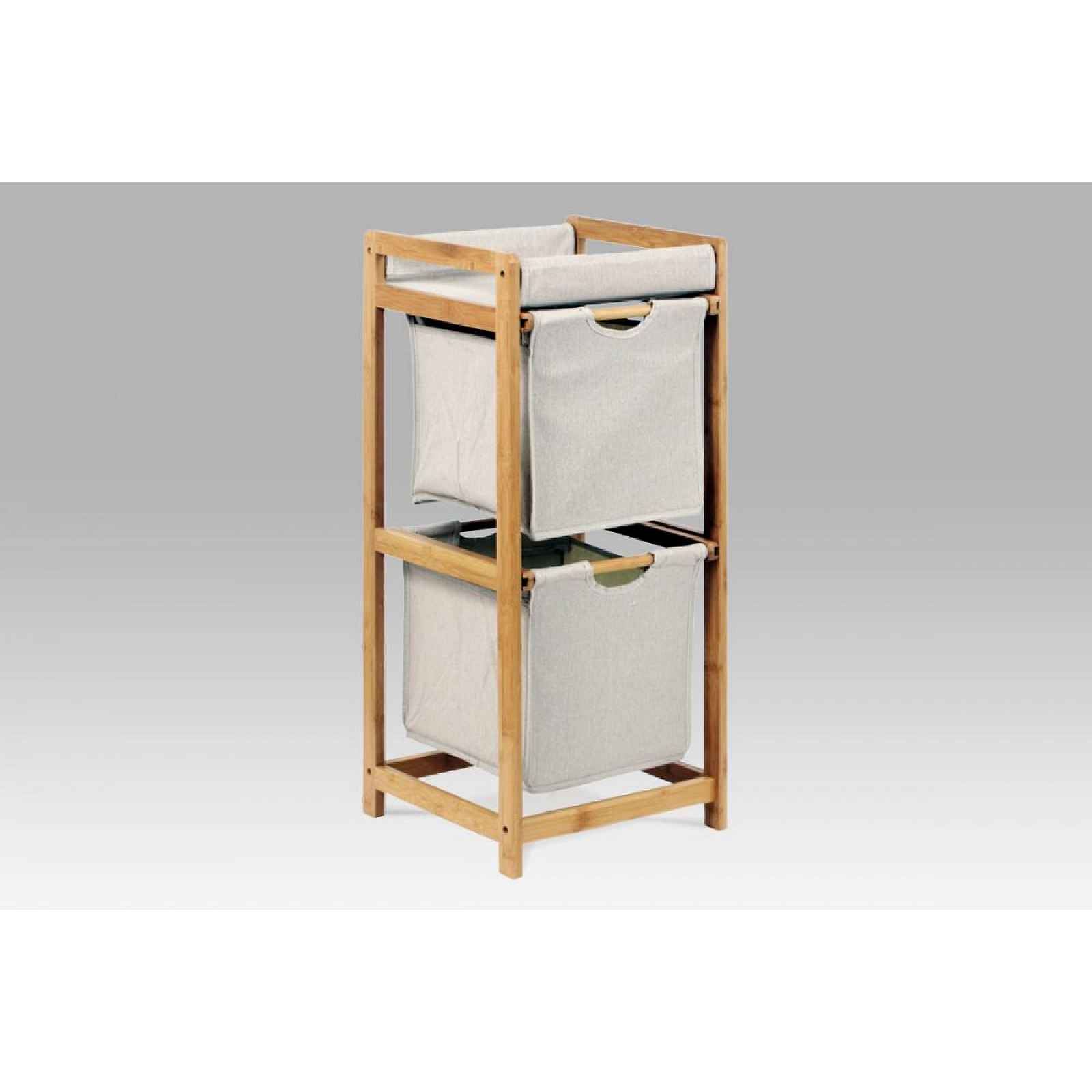 Bambusový regál má dva látkové šuplíky. Materiál konstrukce je přírodní lakované bambusové dřevo a výsuvné látkové šuplíky jsou v barvě šedé.V horní části regálu je praktická odkládací polička. Nosnost každé látkové zásuvky je 2,5 kg.Barva: hnědá / šedáMateriál: bambus / látkaRozměry:šířka: 34 cm hloubka: 33 cmvýška: 78 cmHmotnost:4 kg