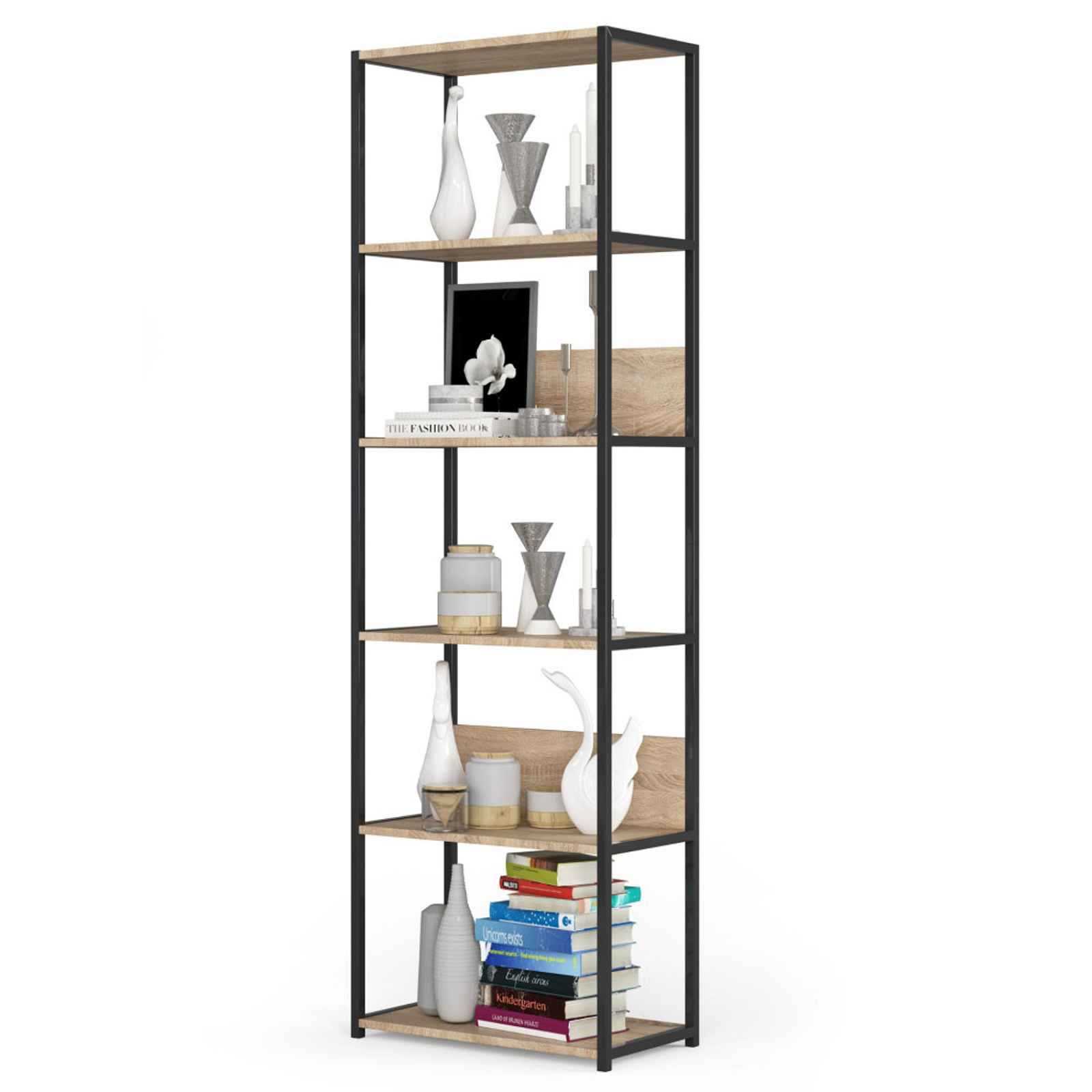 Regál 600, černá/dub sonoma. Kovový regál je praktický a moderní. Bude se dobře vyjímat v obývacím pokoji, ale i v kanceláři. Police jsou vyrobeny z laminované desky. Je vyroben z velmi odolného materiálu, který se vyznačuje vysokou odolností proti oděru. - použití kvalitních materiálů - zajímavé provedení - snadná montáž Údržba: Povrch nábytku utřete do čista měkkým hadříkem. Vyhněte se použití chemikálií.