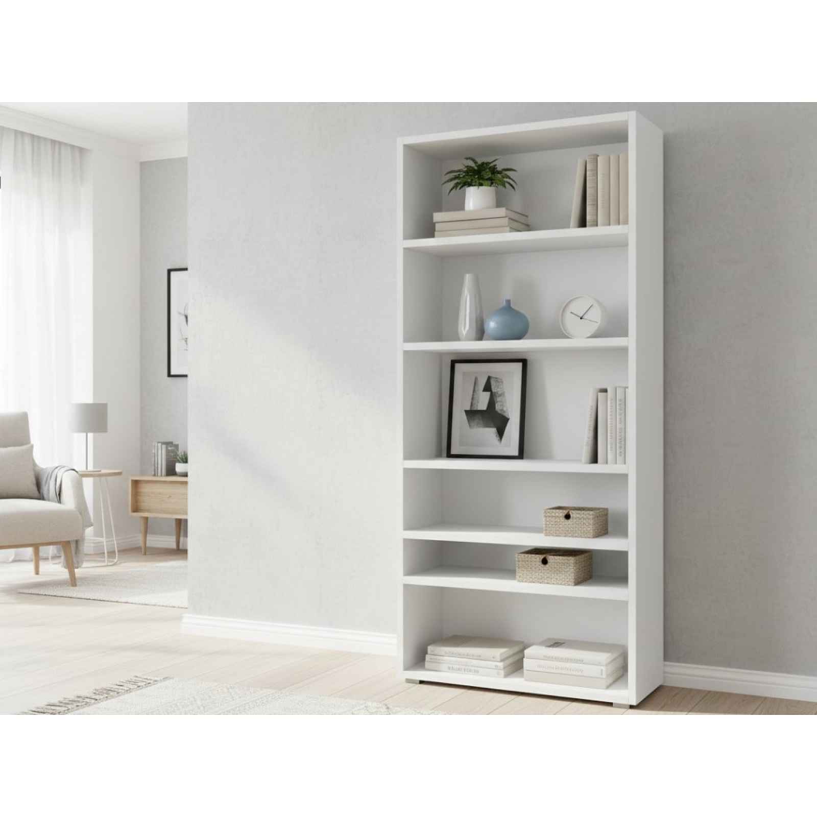 Regál z programu Image - minimalistický design nábytku je zcela univerzální a hodí se do každého moderního interieru. Šířka 85 cm. Regál o šířce 85 cm z programu Image - minimalistický design nábytku je zcela univerzální a hodí se do každého moderního interieru. - regál z programu Image - materiál: laminovaná dřevotříska 16 mm/22 mm (ABS hrany), kov, plast - dekor: bílá mat - nožky: plast, šedá alu - moderní minimalistický styl - šířka: 85 cm - 6 x otevřená přihrádka (4 x výškově nastavitelná police, 1 x pevná police) - zadní ukotvení ke stěně - dodáváno v demontu