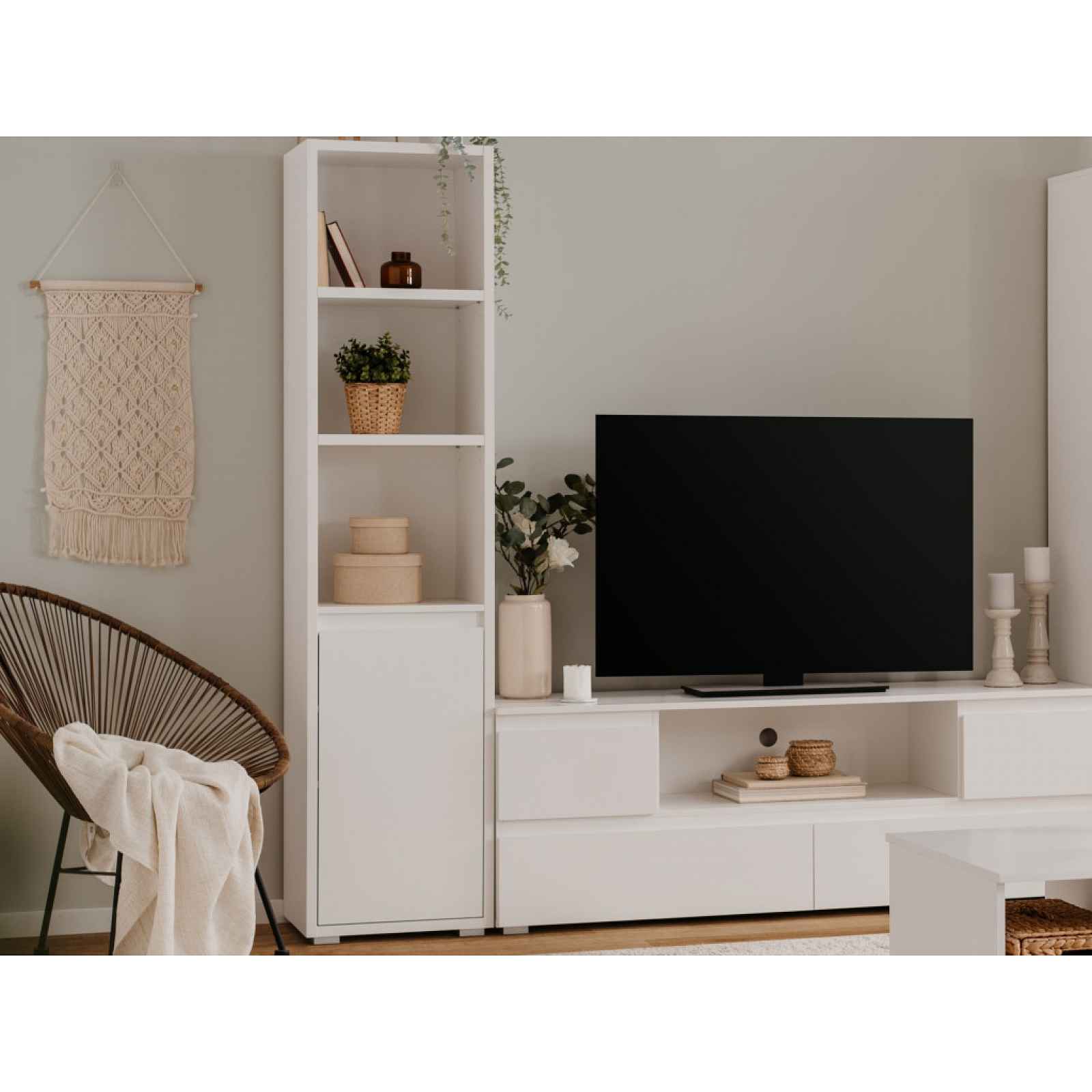 Regál z programu Image - minimalistický design nábytku je zcela univerzální a hodí se do každého moderního interieru. Šířka 45 cm. Regál s dvířky o šířce 45 cm z programu Image - minimalistický design nábytku je zcela univerzální a hodí se do každého moderního interieru. Za otočnými dvířky se skrývá praktický úložný prostor s policí, který vám pomůže udržet pořádek v domácnosti. - regál s dvířky z programu Image - materiál: laminovaná dřevotříska 16 mm/22 mm (ABS hrany), kov, plast - dekor: bílá mat - nožky: plast, šedá alu - moderní minimalistický styl - šířka: 45 cm - 3 x otevřená přihrádka (2 x police) - 1 x otočné dveře (uni montáž jako pravé/levé, úložný prostor, 1 x police) - zadní ukotvení ke stěně - dodáváno v demontu