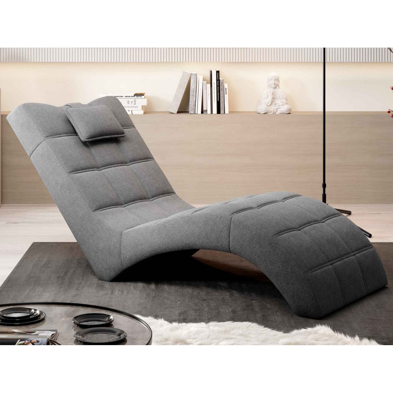 Relaxační lehátko v anatomickém tvaru přímo láká ke trávení příjemných chvil během odpočinku, sledování televize nebo třeba čtení knížek. Tato lenoška je očalouněna příjemně měkkou látkou v barvě holubí šedá. Moderní design této relaxační pohovky zvýrazňuje dvojité prošití i praktický polštářek pod hlavu. - konstrukce: dřevo, dřevotříska, překližka, kov - jádro: vlnovcové pružiny, polyuretanová pěna - potah: látka Verita 90 - jemně strukturovaná látka, barva holubí středně šedá (složení: 100% polyester, otěruvzdornost: 35.000 cyklů) - včetně potažení zadní části (možné umístění i v prostoru) - okrasný dvojitý prošev - pohodlný anatomický tvar - 1 x polštářek pro opření hlavy (lze výškově nastavovat) - moderní design - ideální pohovka k odpočinku, sledování televize, čtení knih atd. - výška sedu: rozpětí cca 31-43 cm - dodáváno smontované