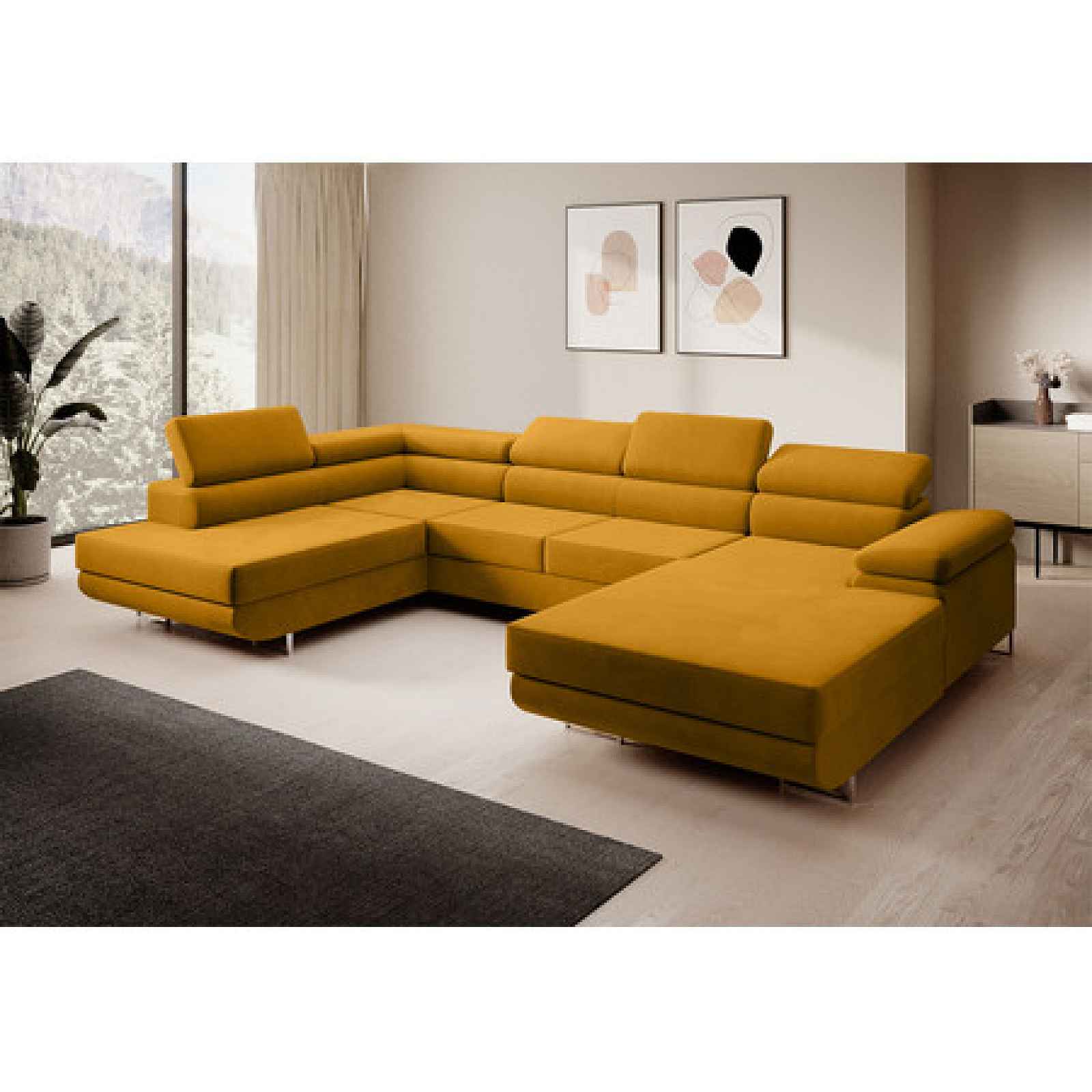 Rohová rozkládací sedací souprava U 274 MARYEN Levá Žlutá