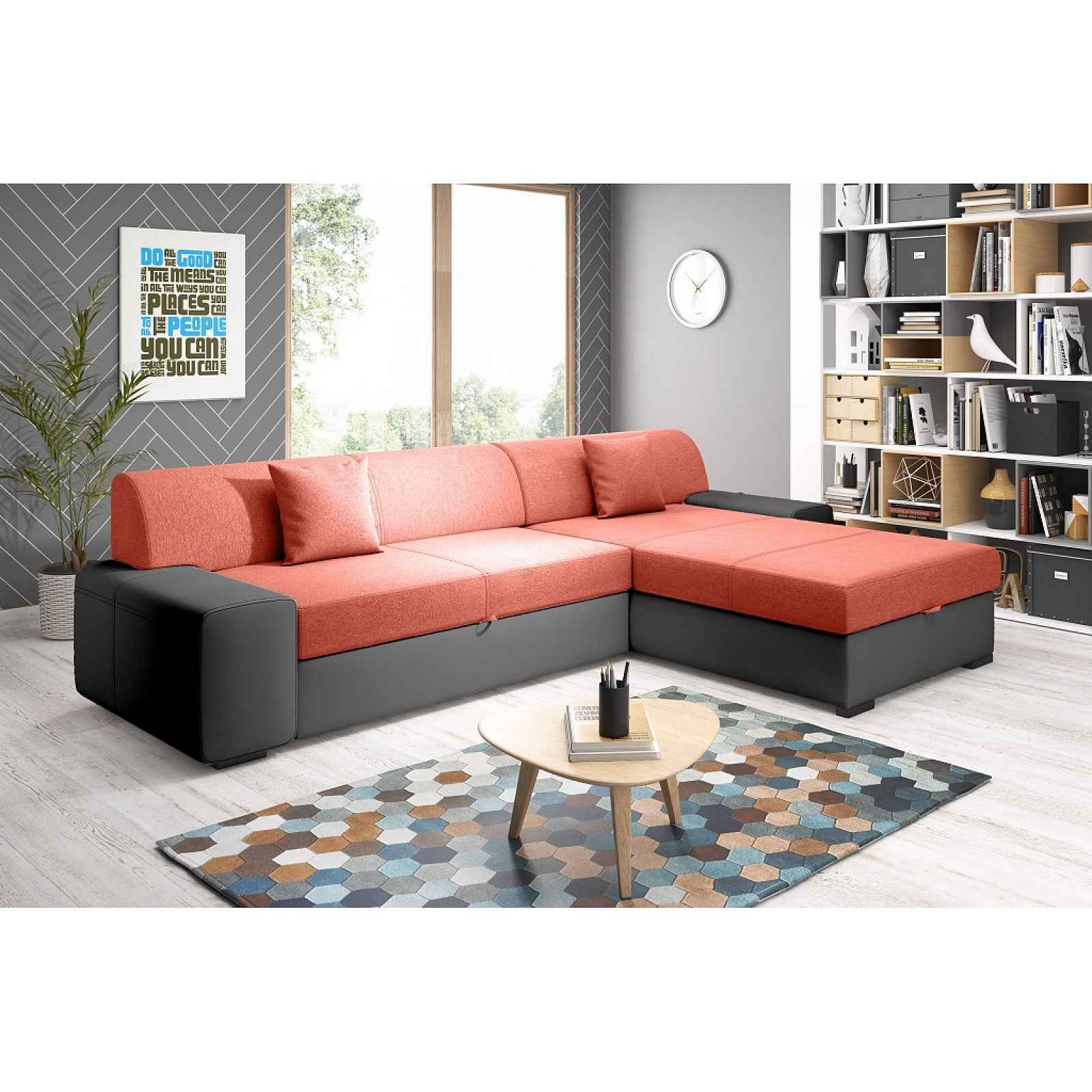 Rozkládací rohová sedačka, praváObrázek rozkladu je pouze ilustrativní (jiná barva)! Potahová látka: primo 52 = cihlová látka/madryt 1100 = černá ekokůže Součástí jsou 2 dekorační polštáře a úložný prostor. Celočalouněná, vhodná do prostoru. Rozměr (šxvxh): 290 x 71 x 175 cm Ložná plocha (šxh): 220 x 135 cmVýška sedu: 42 cmHloubka sedu: 65 cm (bez podušek) Materiál: pružina typu bonell, polyuretanová pěna T25 Nohy dřevěné. Dodáváno v demontu. Rozměry (šxvxh) a váhy balíků: 1. balík - 165 x 74 x 95 cm, 65 kg2. balík - 175 x 74 x 127 cm, 62 kg