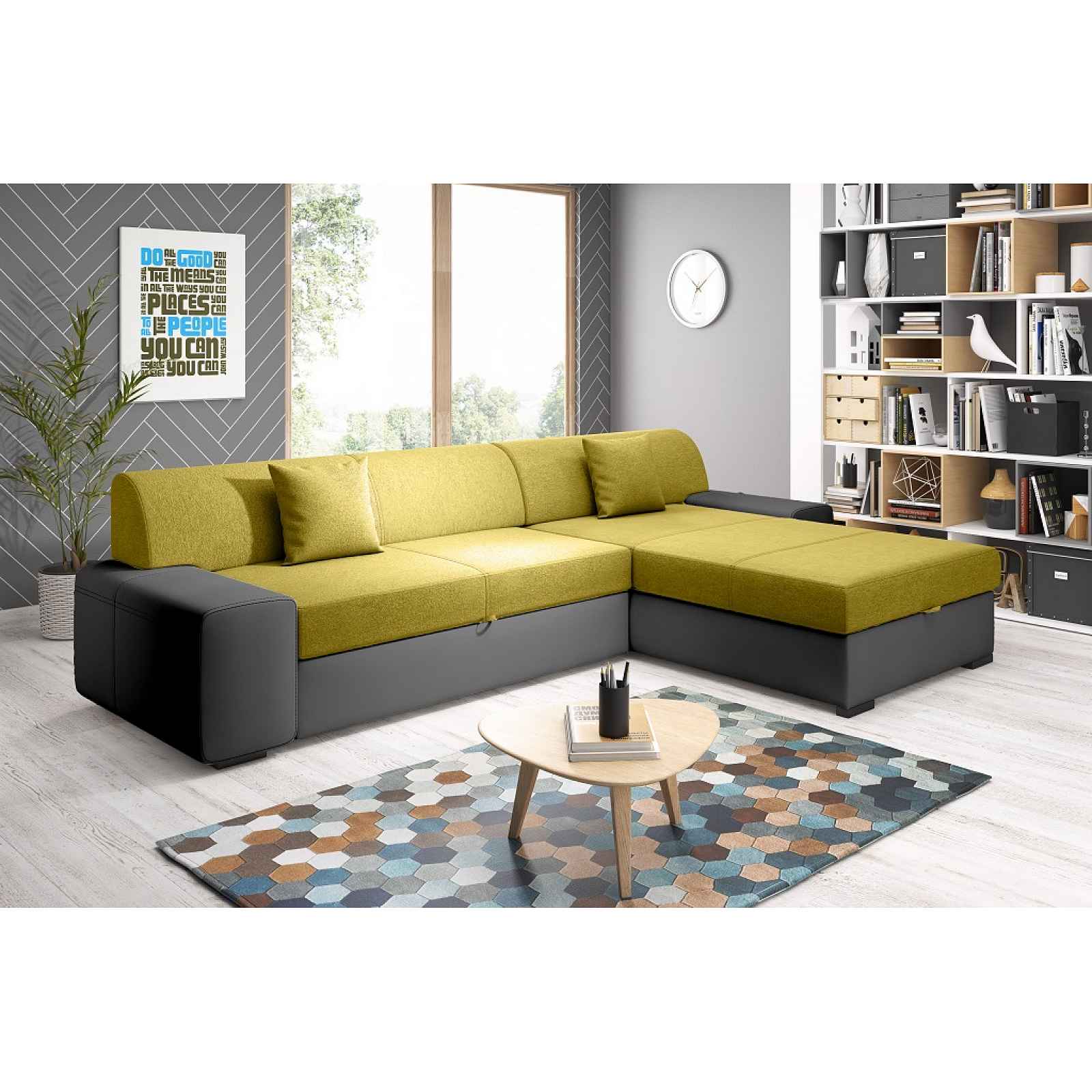 Rozkládací rohová sedačka, praváObrázek rozkladu je pouze ilustrativní (jiná barva)! Potahová látka: primo 48 = žlutá látka/madryt 1100 = černá ekokůže Součástí jsou 2 dekorační polštáře a úložný prostor. Celočalouněná, vhodná do prostoru. Rozměr (šxvxh): 290 x 71 x 175 cm Ložná plocha (šxh): 220 x 135 cmVýška sedu: 42 cmHloubka sedu: 65 cm (bez podušek) Materiál: pružina typu bonell, polyuretanová pěna T25 Nohy dřevěné. Dodáváno v demontu. Rozměry (šxvxh) a váhy balíků: 1. balík - 165 x 74 x 95 cm, 65 kg2. balík - 175 x 74 x 127 cm, 62 kg