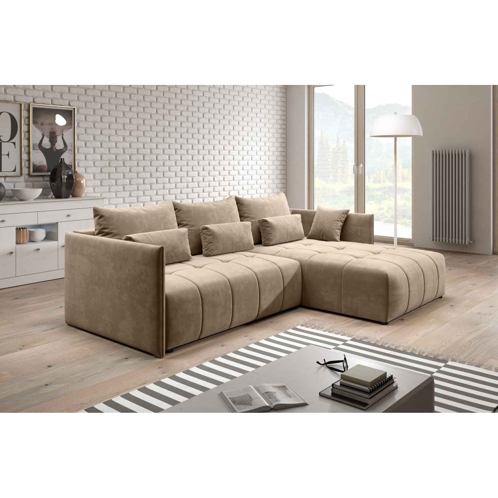 Rozkládací rohová sedačka Sedačka je univerzální = roh lze smontovat na pravý i levý! Potahová látka: monolith 09 = světle hnědá látka Součástí jsou polštáře se zapínáním na zip a úložný prostor.Celočalouněná, vhodná do prostoru. Obrázek rozložené sedačky je ilustrativní (jiná barva)! Rozměr (šxvxh): 245 x 83 (75 cm bez polštářů) x 182 cm Ložná plocha (šxh): 232 x 147 cmVýška sedu: 40 cmHloubka sedu: s polštáři 65 cm, bez polštářů 87 cmRozměry úložného prostoru (šxh): 130 x 70 cm Materiál: pružina vlnitá, owata, polyuretanová pěna T30 Nohy plastové černé. Dodáváno v demontu. Záruka 24 měsíců.