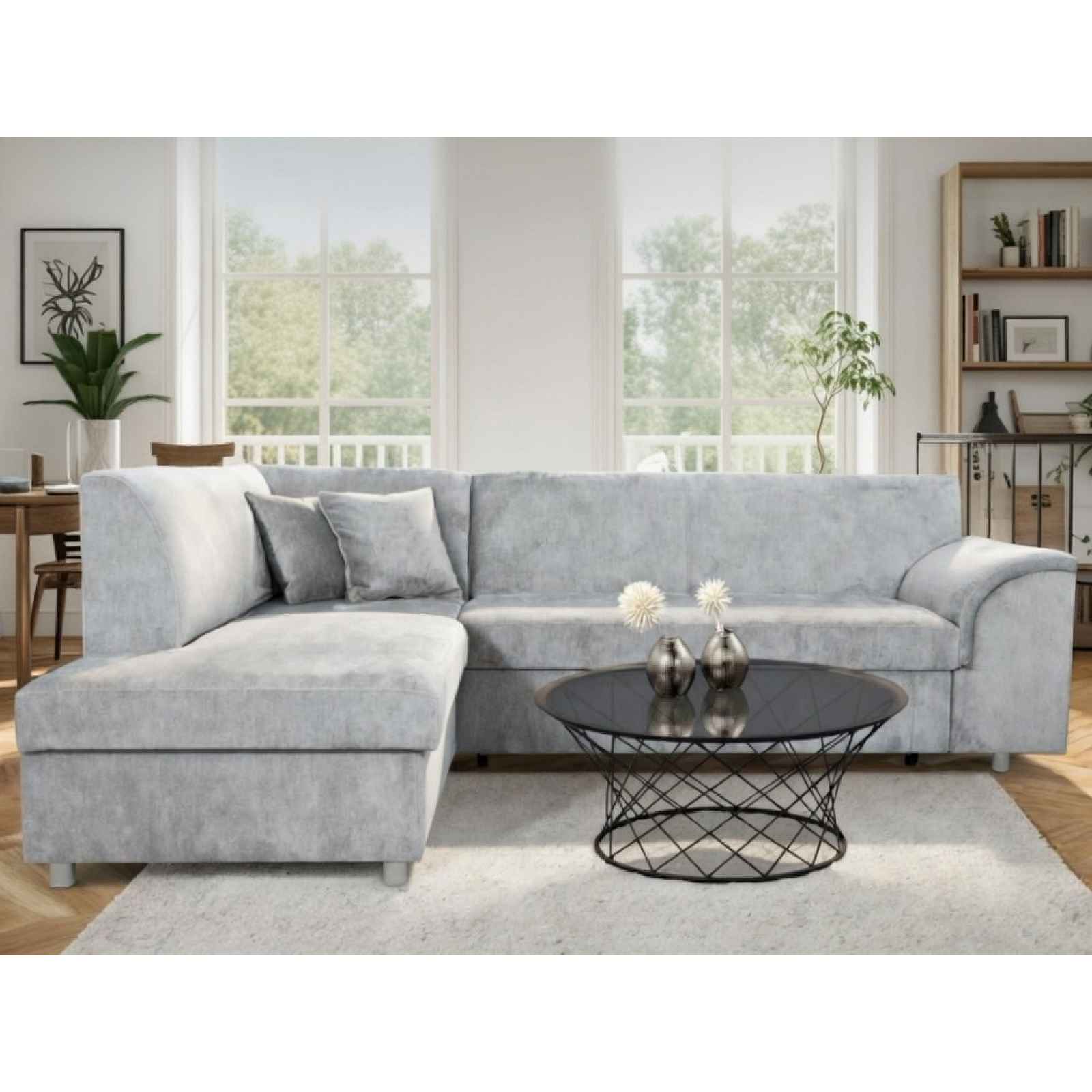 Elegantní rohová sedačka se zaoblenou područkou pasuje do klasického i moderního obýváku. Sedačka je vybavena rozkládací funkcí i úložným prostorem pod otomanem. Elegantní rohová sedačka se zaoblenou područkou pasuje do klasického i moderního obýváku. Sedačka je vybavena rozkládací funkci i úložným prostorem pod otomanem, se kterým tvoří levý roh. Očalouněna měkce strukturovanou látkou v barvě melírová holubí šedá. - konstrukce: dřevo, dřevotříska, překližka, kov - jádro: vlnovcové pružiny, polyuretanové pěny, čalounický flís - potah: látka Aragon 90 – měkce strukturovaná žinilková látka, barva melírová holubí šedá (složení: 95% PES/5% NY, otěruvzdornost: 60.000 cyklů) - včetně potažení zadní části (možné umístění i v prostoru) - 2 x malý polštář (potah na zip, rozměry cca 35x35 cm) - rohový půdorys – levý roh (otoman umístěn vlevo) - pravá područka - zaoblený tvar - sedák: středně měkký - opěrák: středně měkký - nohy: plast, chromový lesk, výška 5,5 cm - funkce rozkladu na příležitostné lůžko: plocha 197x124 cm (výsuvný typ rozkladu, konstrukce kov/dřevo, na kolečkách = snadná manipulace, plocha lůžka potažena látkou) - úložný prostor (pod otomanem, vyklápěcí kovová konstrukce) - dodáváno v částečném demontu